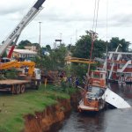 Barco que foi jogado por caminhão é retirado do rio Guaporé em RO