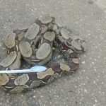 Jiboia 'sem rabo' tenta atravessar avenida na frente de rodoviária em Porto Velho