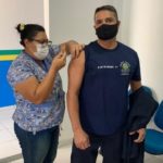 Policiais Militares do 8º Batalhão que atuam na linha de frente no Combate à Covid-19 recebem primeira dose de vacina