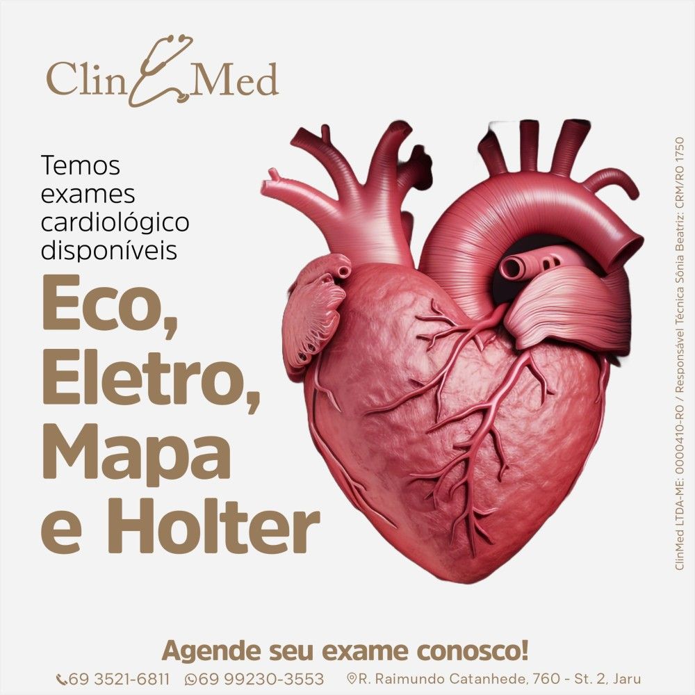 Na Clin Med, você encontra o cuidado que a sua saúde merece! Nossa equipe especializada está pronta para realizar exames cardiológicos essenciais, como Mapa e Holter, garantindo diagnósticos precisos e tratamentos adequados para o seu coração.
