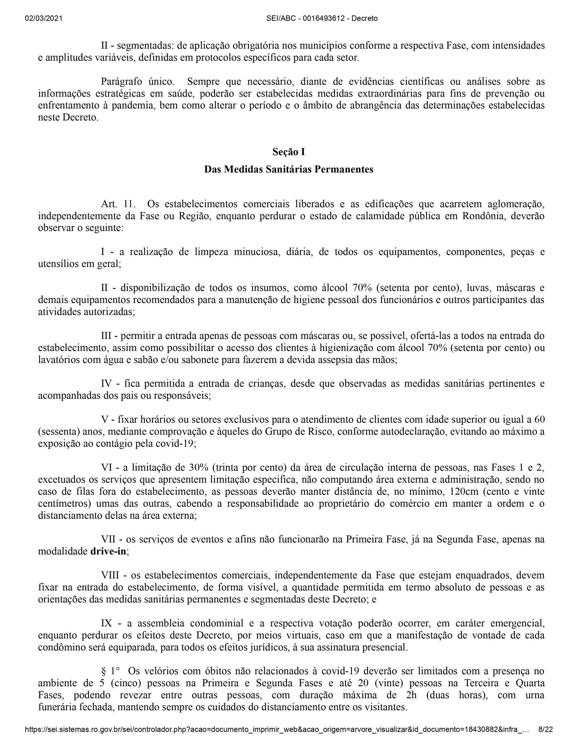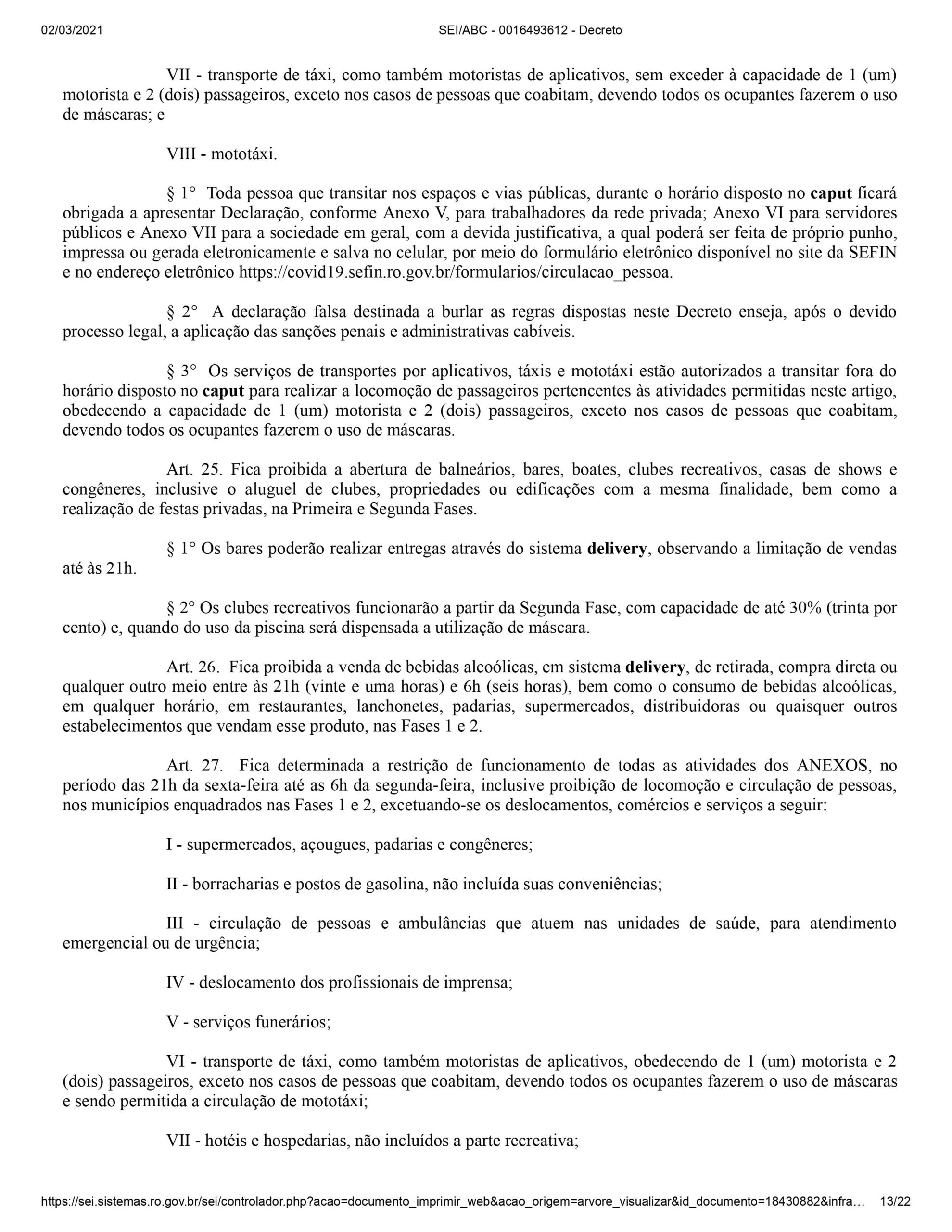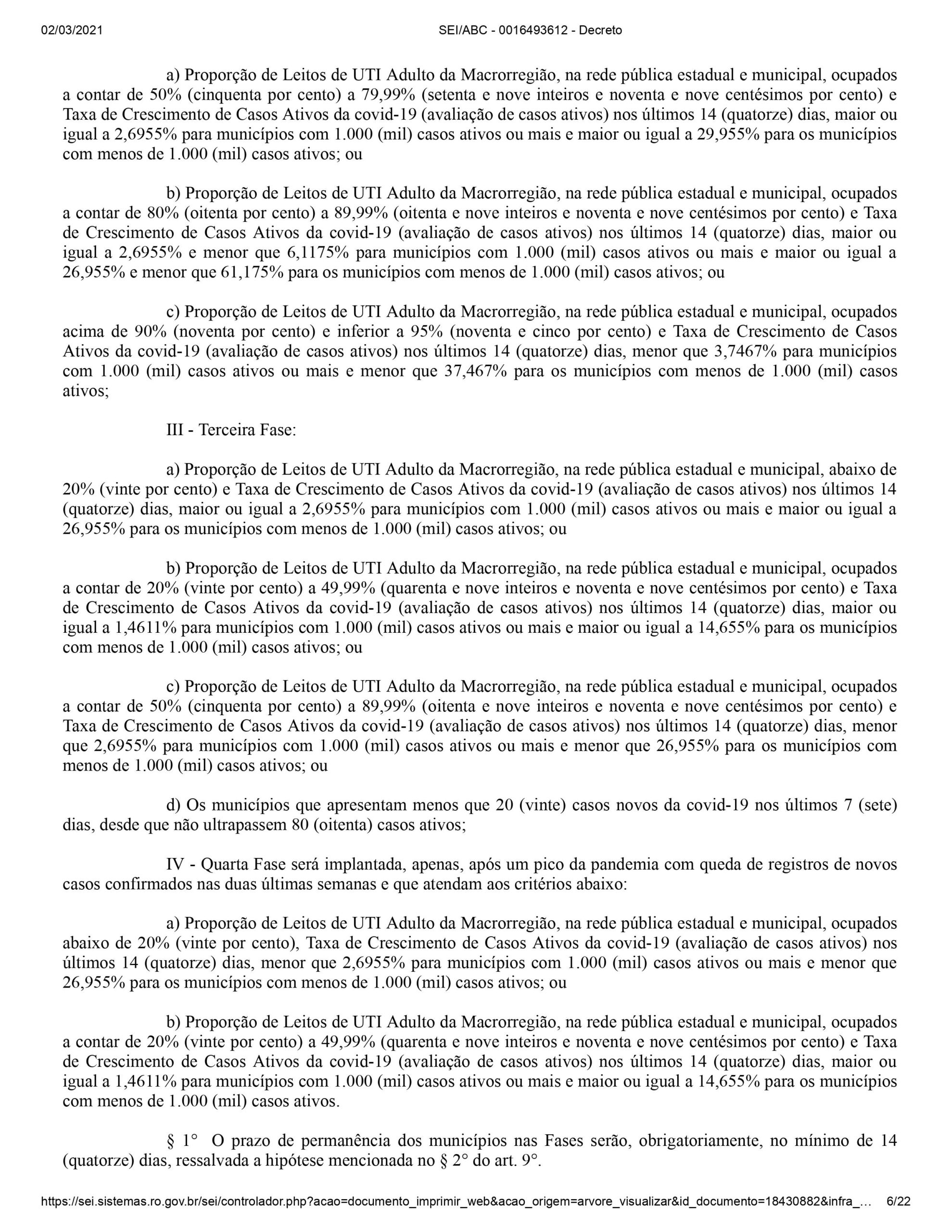 Em Rondônia, comércios, bares e restaurantes não poderão funcionar nos próximos finais de semana e durante a noite em dias úteis. A determinação consta no novo decreto publicado em edição especial do Diário Oficial desta terça-feira (2). O motivo é a nova alta no número de casos, mortes e internações provocadas pela Covid-19.