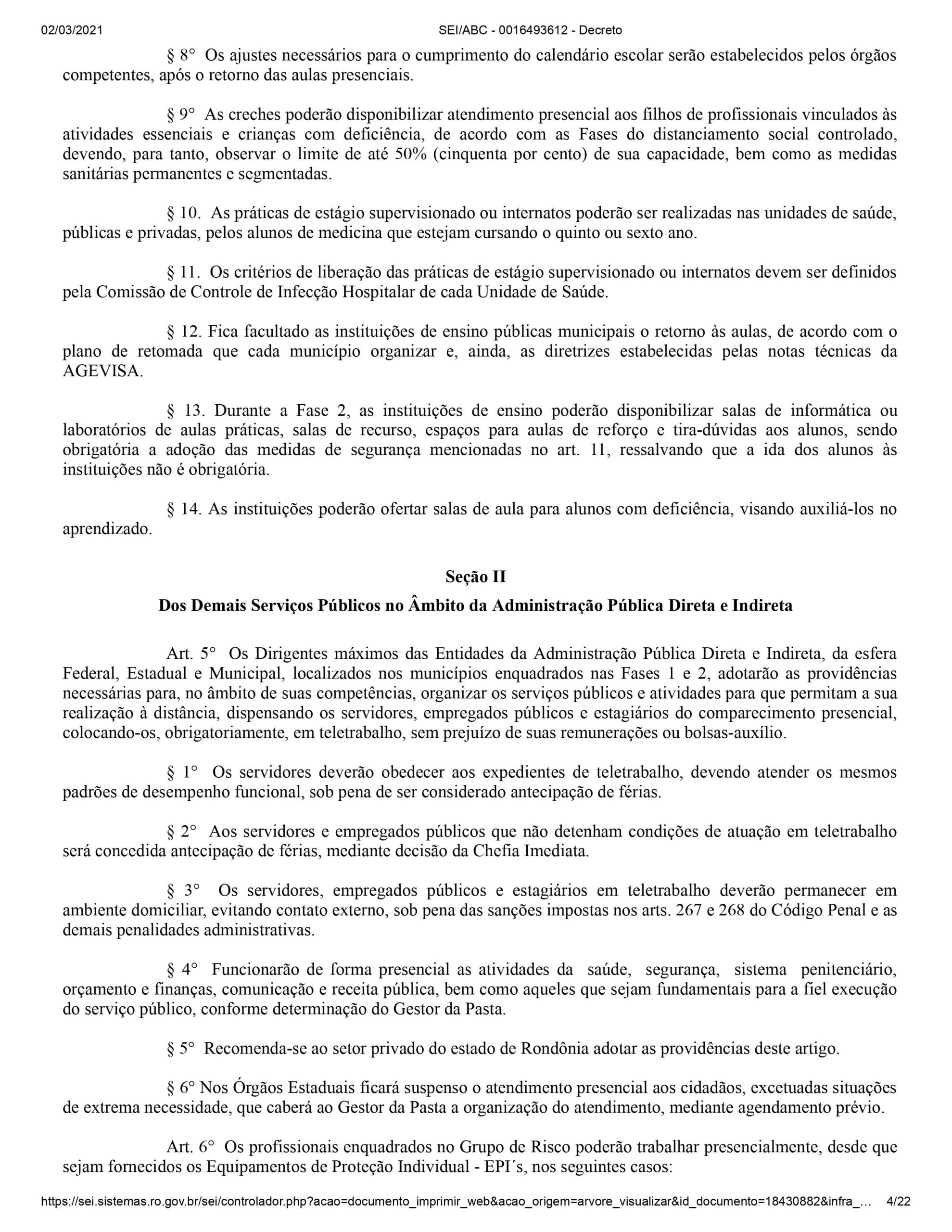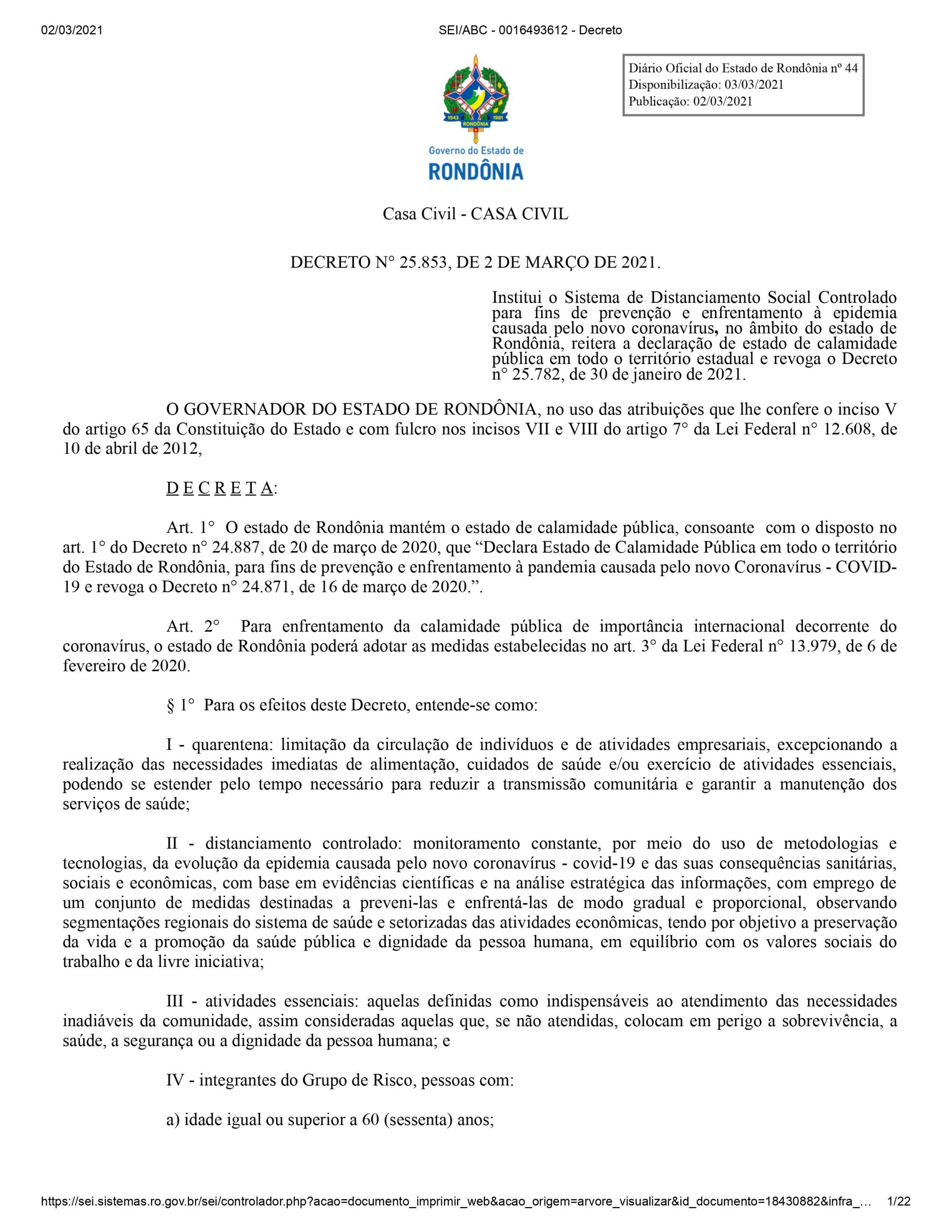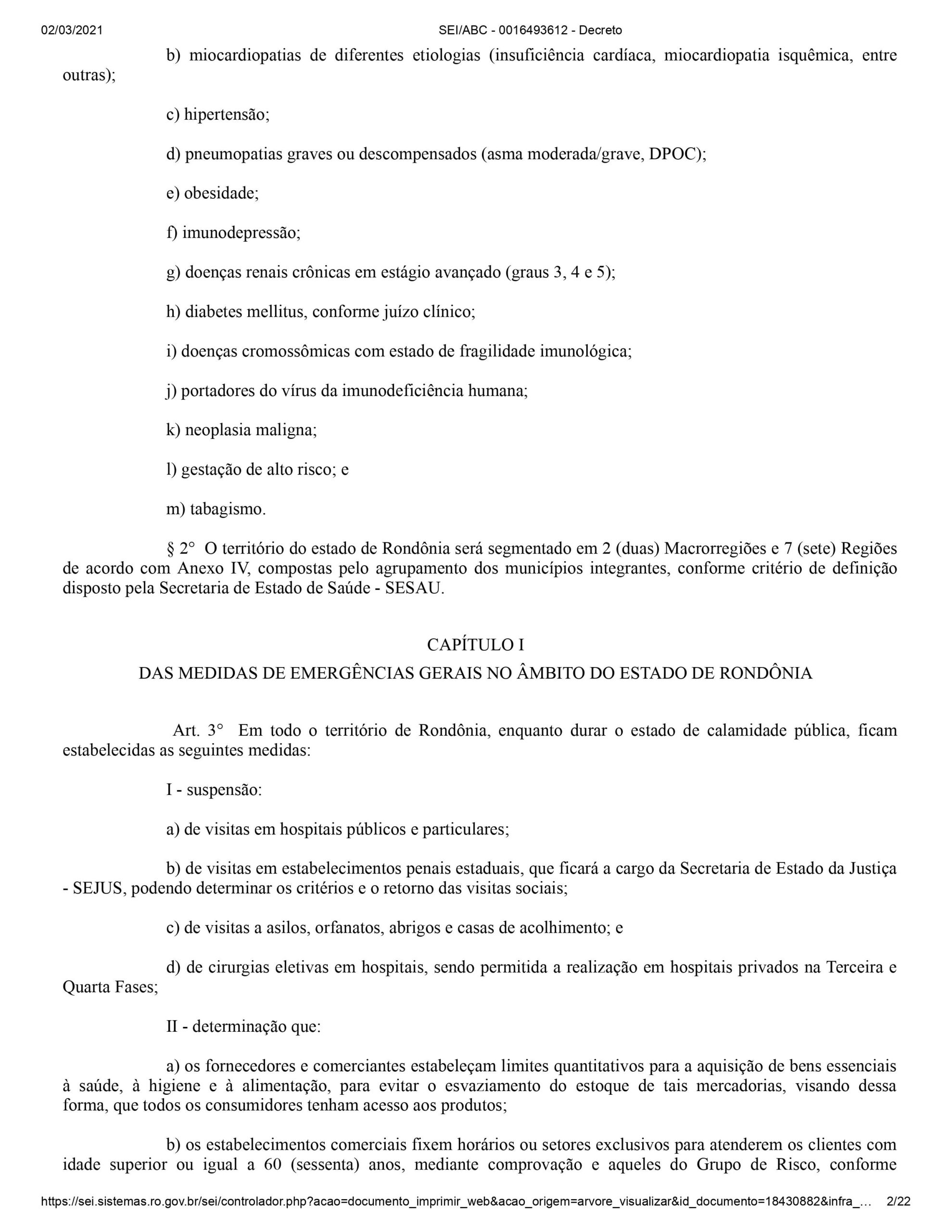 Em Rondônia, comércios, bares e restaurantes não poderão funcionar nos próximos finais de semana e durante a noite em dias úteis. A determinação consta no novo decreto publicado em edição especial do Diário Oficial desta terça-feira (2). O motivo é a nova alta no número de casos, mortes e internações provocadas pela Covid-19.