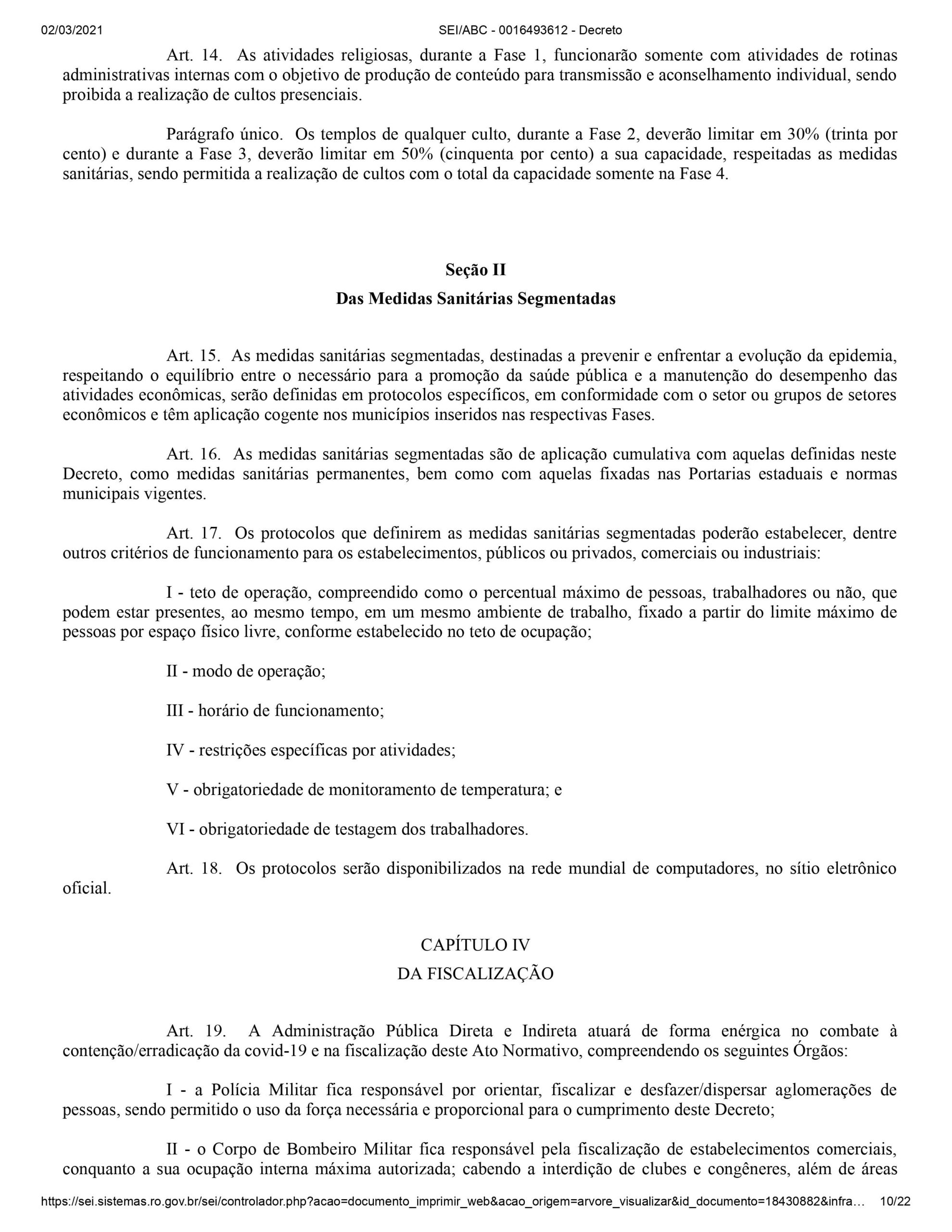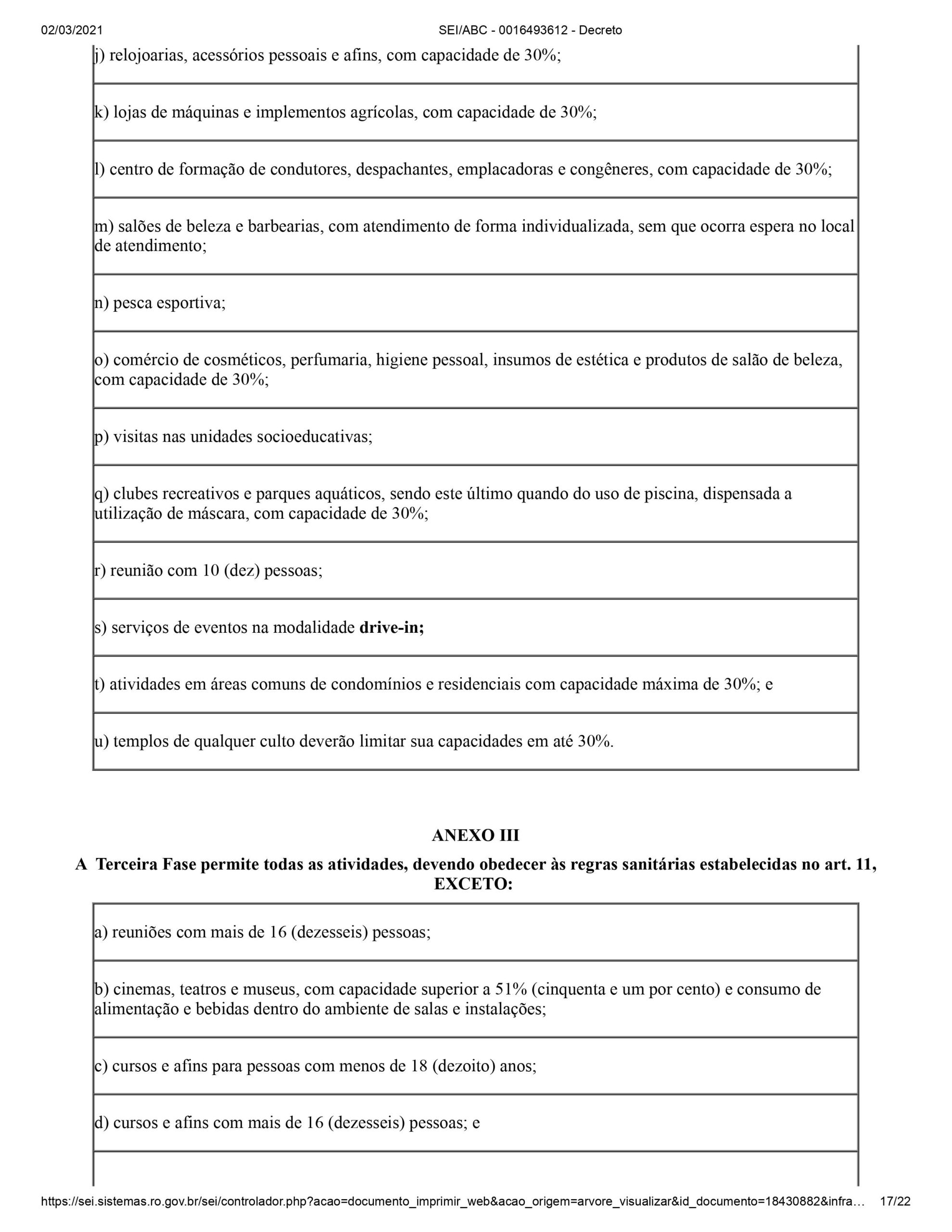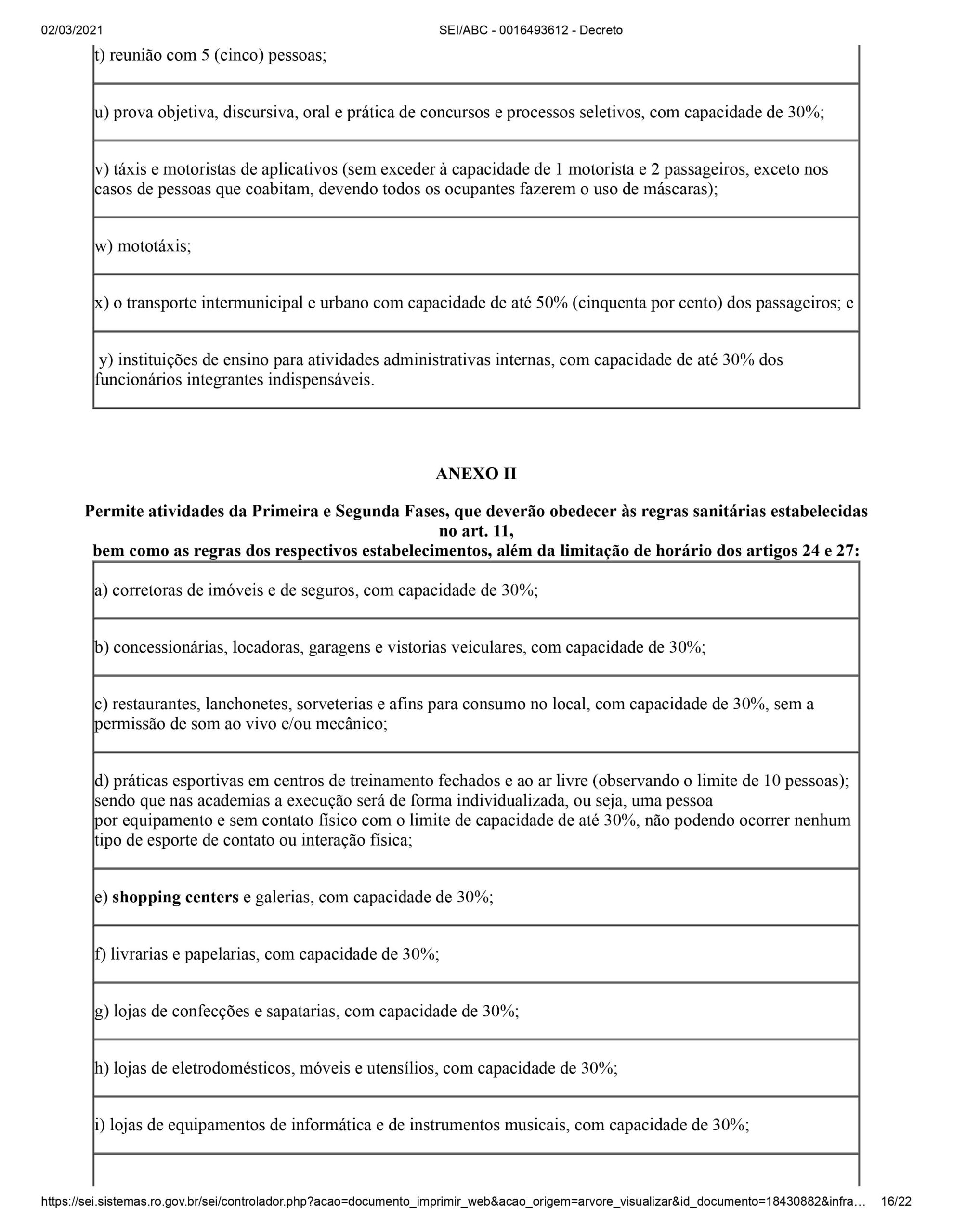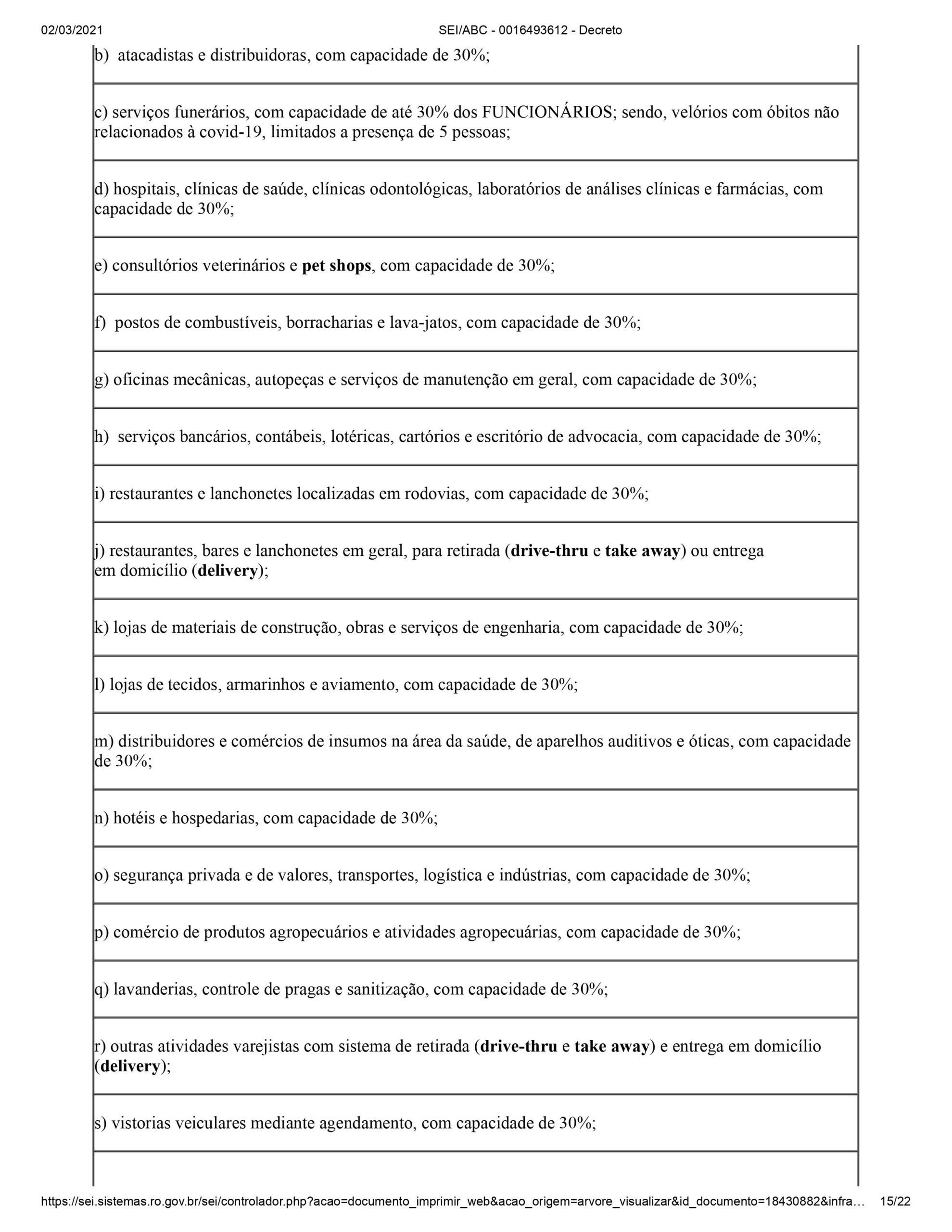 O documento determina a restrição de funcionamento de parte do comércio entre 21h de sexta-feira até as 6h de segunda-feira. Podem funcionar APENAS: