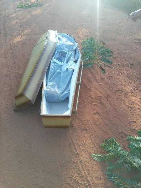 Um caixão com o corpo de um homem que tinha a identificação de risco biológico por covid-19 foi localizado no último sábado (23) em uma estrada não pavimentada da BR-135, entre os municípios de São Desidério e Correntina, no oeste baiano. O caixão foi achado por pessoas que passavam pelo local. Como havia um papel com o número do telefone da funerária, avisaram ao estabelecimento sobre o ocorrido.