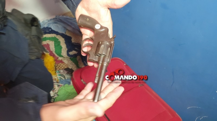 Ao parar a viatura para proceder a abordagem, o suspeito, identificado como Taylan Pinheiro Machado, tentou correr, mas ele foi contido e em seu poder, os policiais localizaram um revólver calibre 38, municiado. Tayla falou que pertence a uma facção criminosa e que a arma seria para sua defesa, pois sua facção está em guerra com a facção rival.