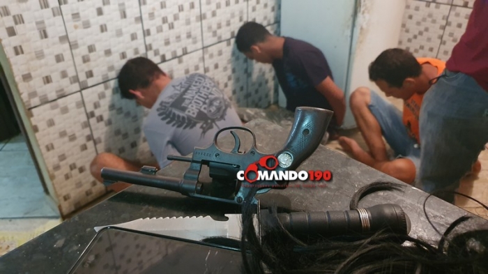 Na ação policial, além de duas armas de fogo apreendidas, os policiais também localizaram uma peruca e duas tocas ninjas, usadas em assaltos. Os três suspeitos presos, possuem diversas passagens pela justiça por Roubo.