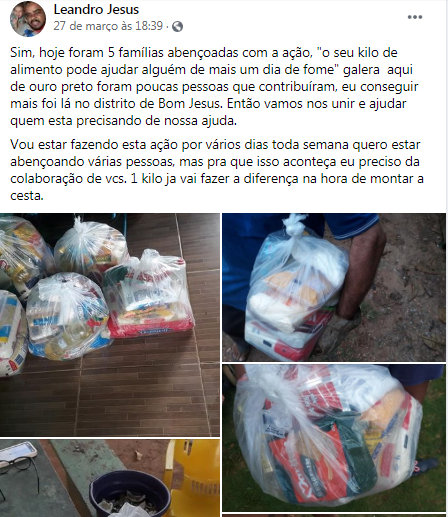 O estudante já tem como costume arrecadar alimentos e ajudar a famílias carentes. Ele que é morador de Ouro Preto, utiliza suas redes sociais para fazer o bem, sempre arrecadando alimentos e distribuindo.