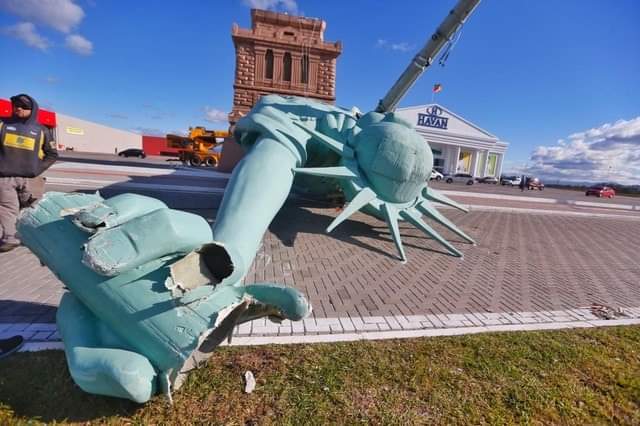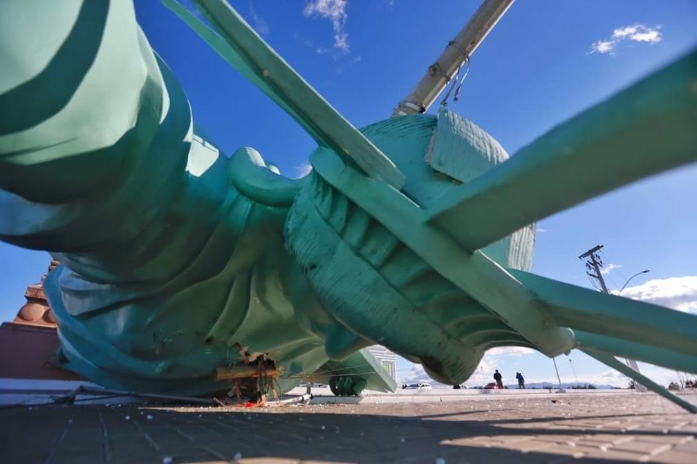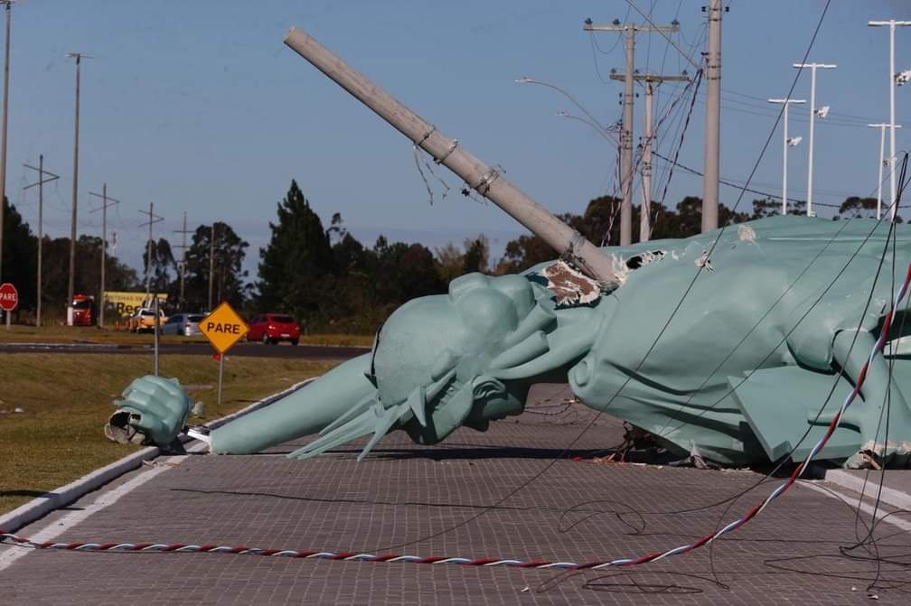 Uma réplica da Estátua da Liberdade, símbolo da loja Havan, caiu em Capão da Canoa, no Litoral Norte do Rio Grande do Sul, nesta segunda-feira (24).