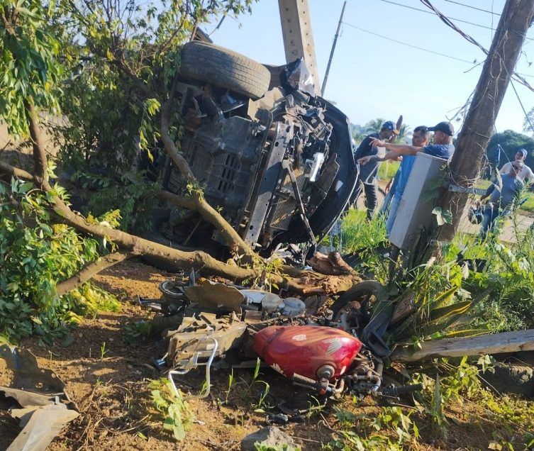 A caminhonete ainda atingiu um poste, uma árvore e uma bicicleta que estava debaixo da árvore, ampliando os danos no local do acidente. De acordo com informações preliminares, o motorista da Hilux não sofreu ferimentos.