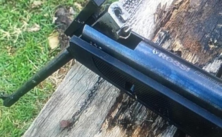 De acordo com as informações, o caseiro de uma propriedade estava dentro de sua residência, quando ouviu alguns disparos de arma de fogo, ao sair para averiguar, encontrou um homem em seu quintal com uma carabina. Ele de imediato acionou a PM.