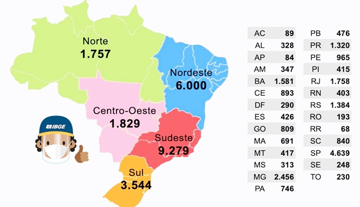 As vagas são distribuídas em 3.929 municípios do país para agente censitário e em 5.297 cidades para recenseador .