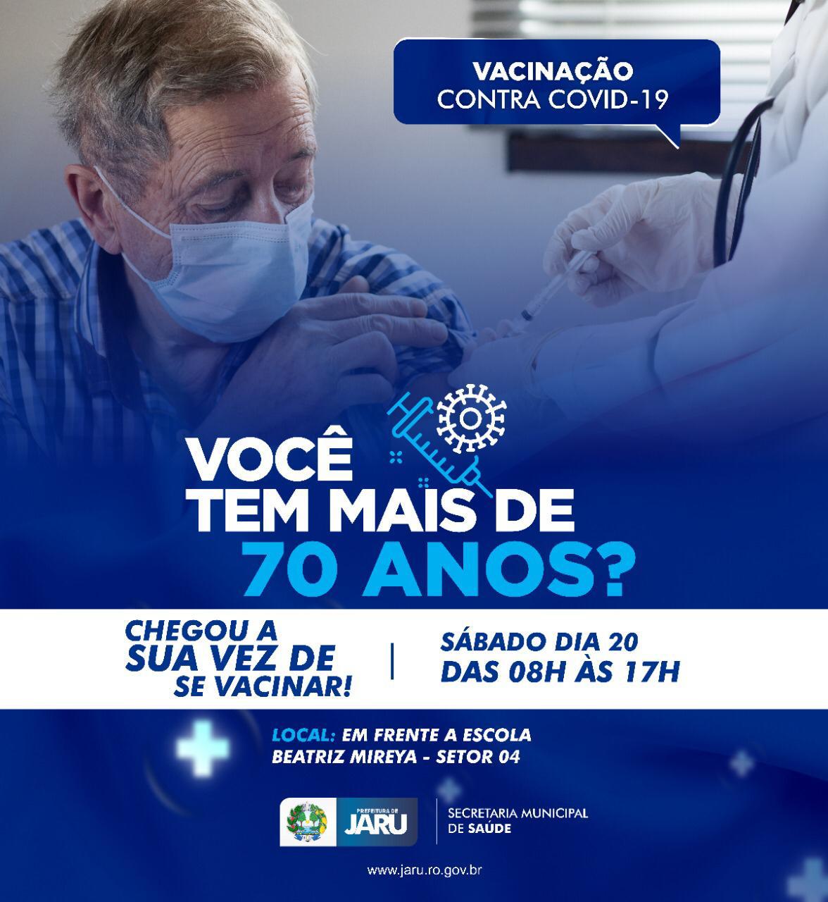 A prefeitura de Jaru avança no calendário de imunização contra o Coronavírus no município.