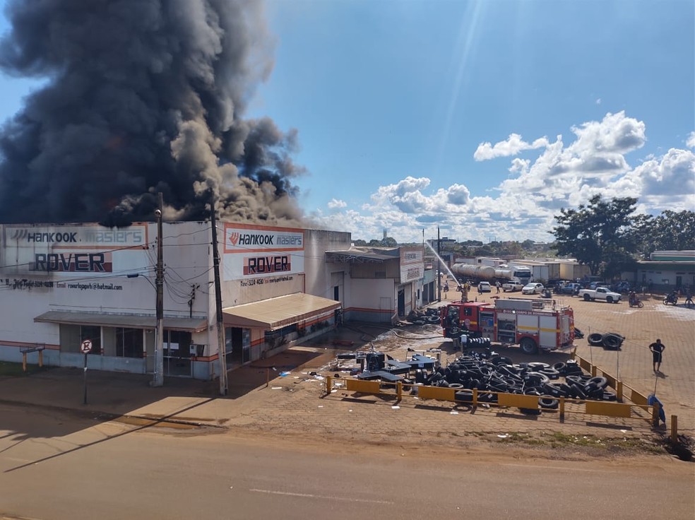 Incêndio em loja de pneus em Porto Velho — Foto: Ruan Gabriel/Rede Amazônica