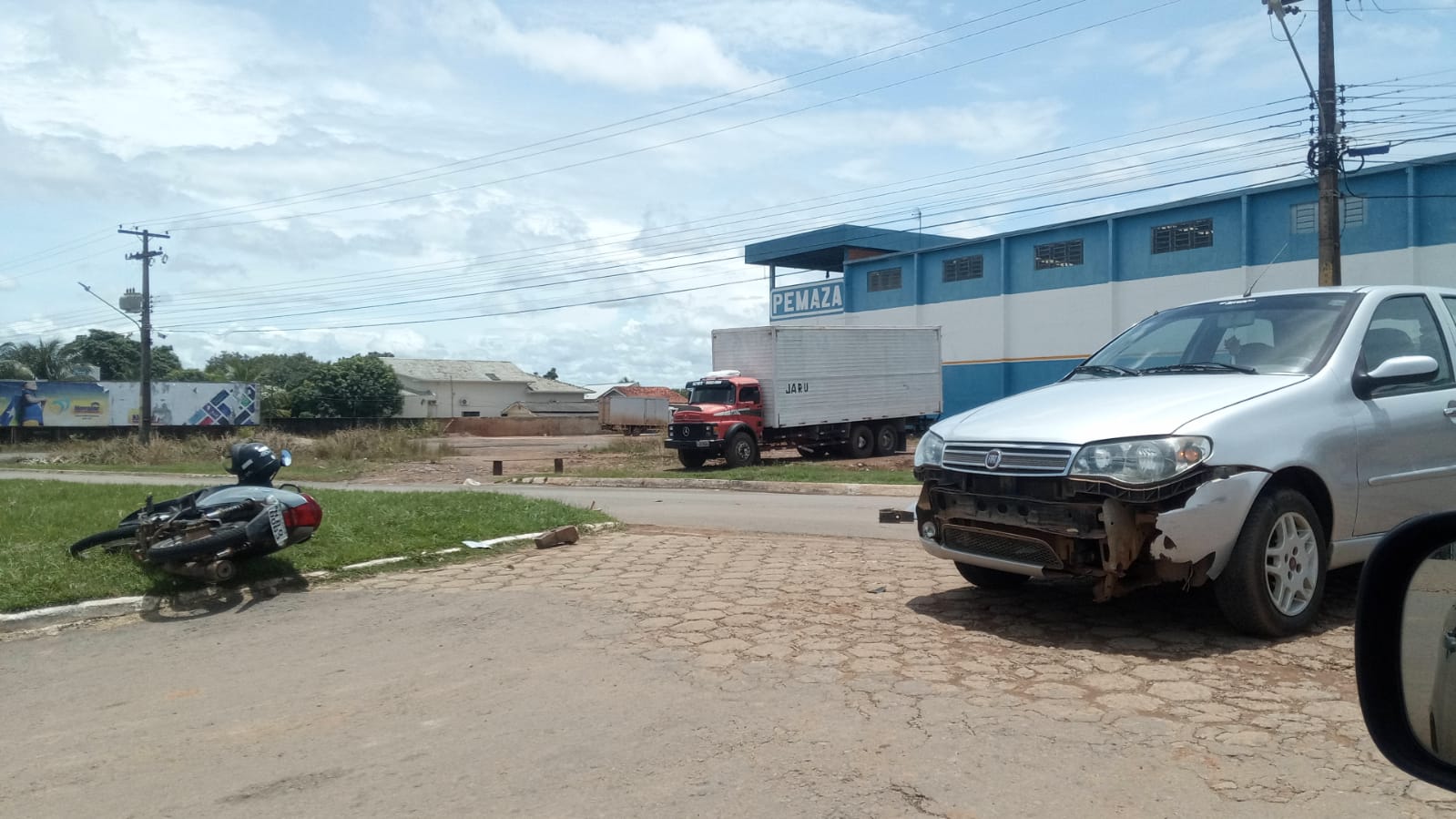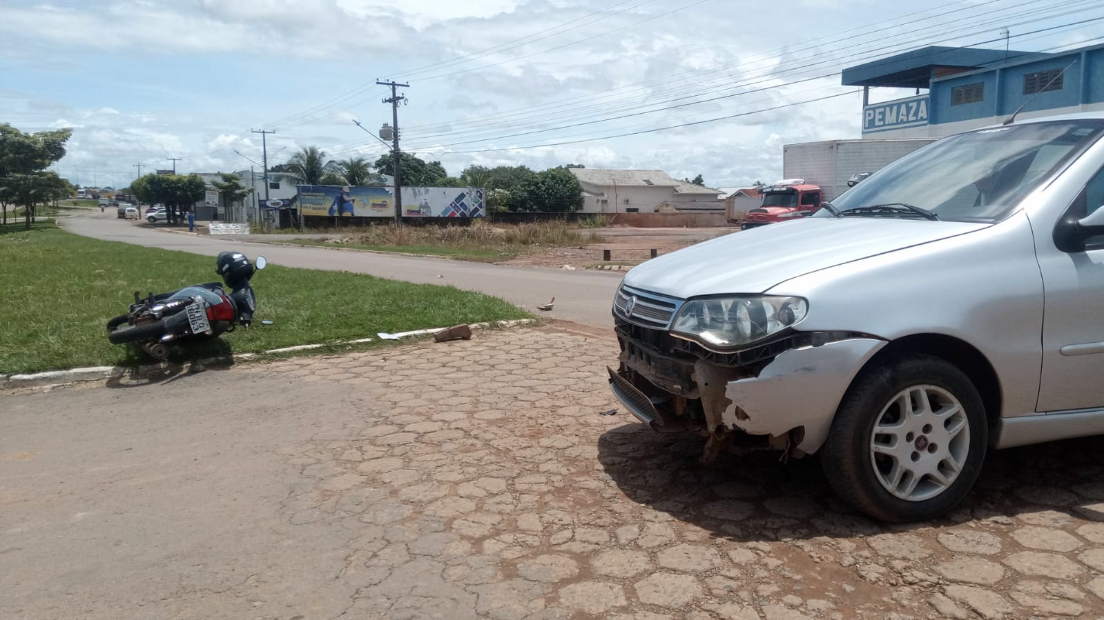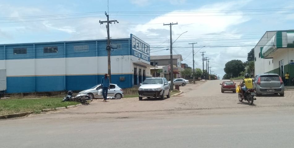 No inicio da tarde desta segunda-feira (08), aconteceu um acidente de trânsito no cruzamento da Av. Marechal Rondon com Av. JK, próximo a BR-364, envolvendo um carro modelo Fiat Palio e uma motoneta Honda Biz.