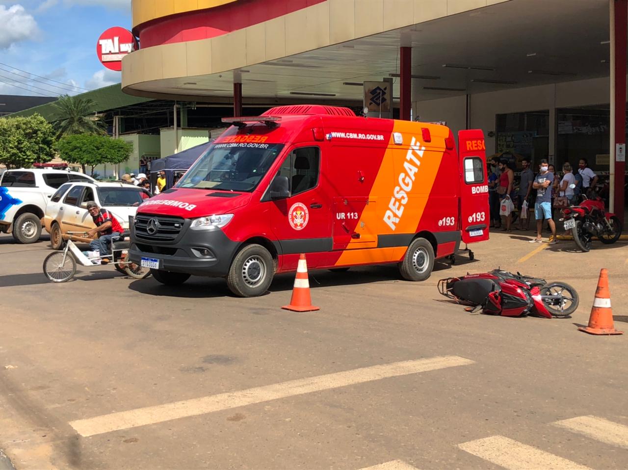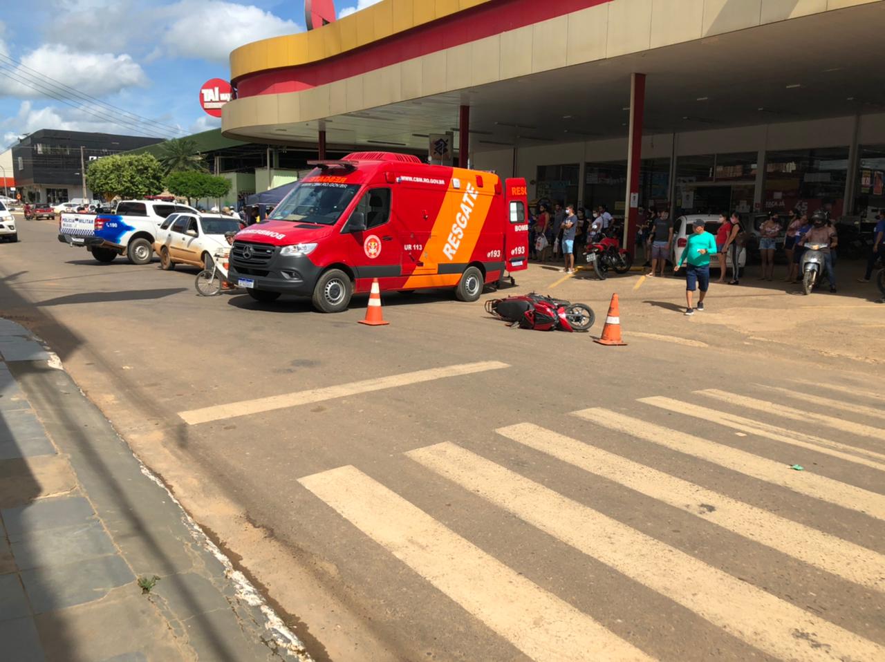 O motorista do carro seguia na rua Marechal Rondon sentido BR 364 e a motociclista seguia na Av. Brasil sentido rua Marechal Rondon quando convergiu a direita vindo a colidir na frente do carro. No momento da colisão a mulher que pilotava a Crypton veio ao solo, permanecendo deitada até a chegada dos bombeiros. O motorista do carro ainda tentou freiar e desviar, deixando as marcas de pneu no asfalto, porém não conseguiu.
