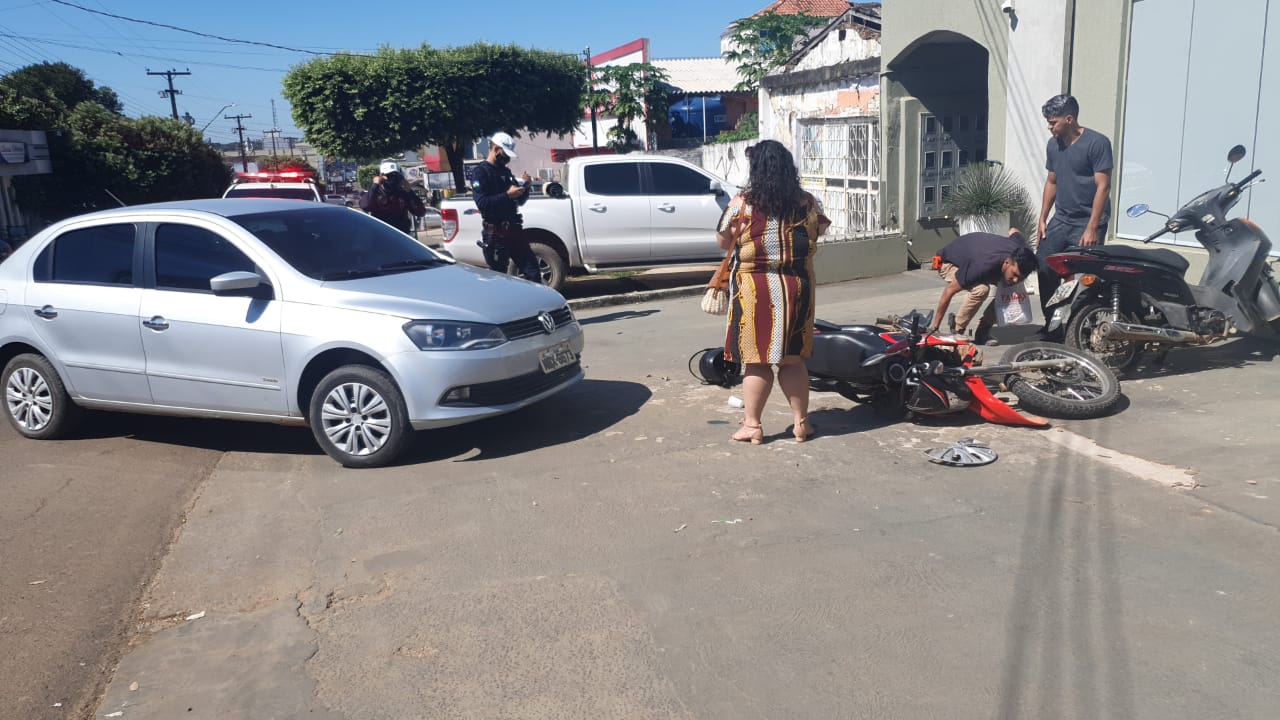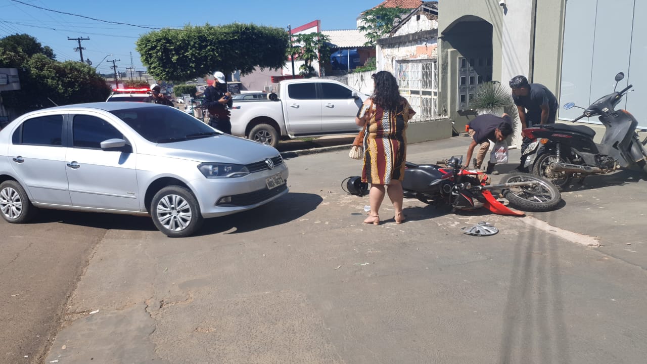 Na manhã desta terça-feira (18) aconteceu um acidente de trânsito envolvendo uma motocicleta Honda Broz e um carro Volkswagen Voyage, na Av. Padre Adolpho Rohl, em frente um Salão de beleza.