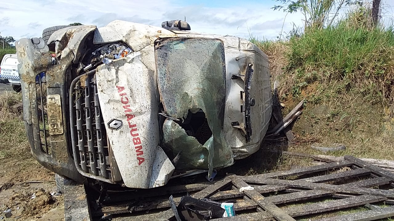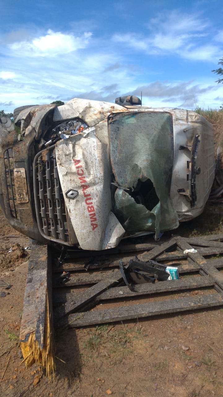 O acidente ocorrido na tarde deste sábado (03) envolvendo uma ambulância da cidade de Jaru deixou o veículo destruído.