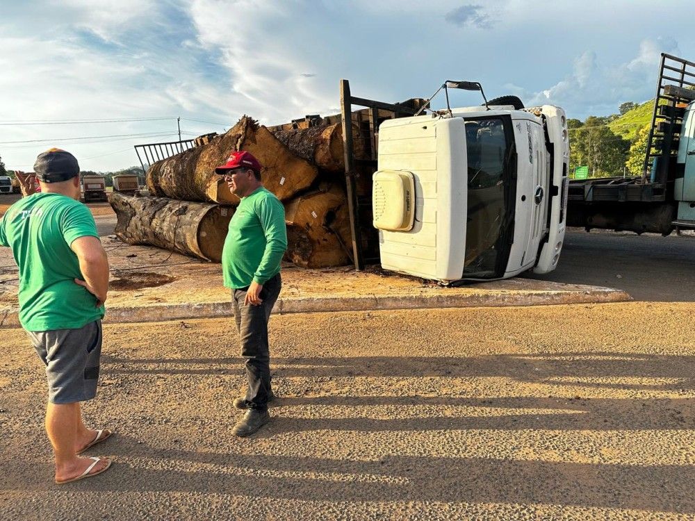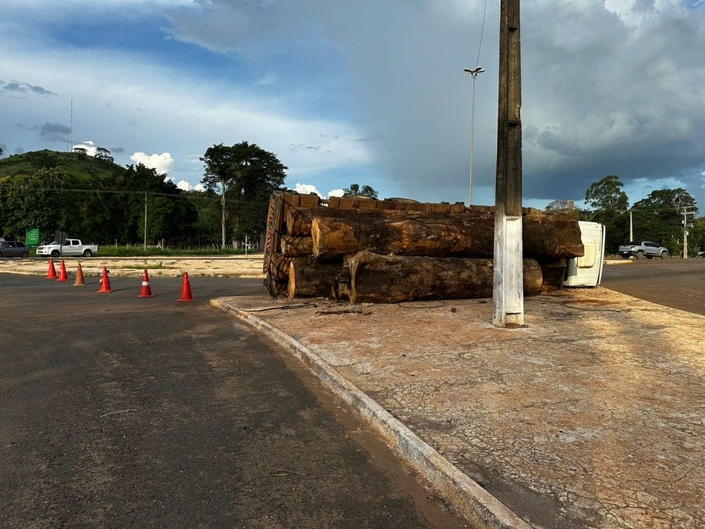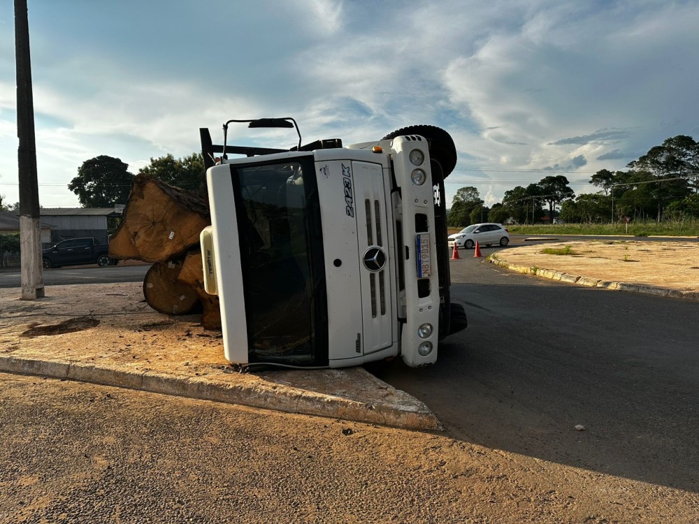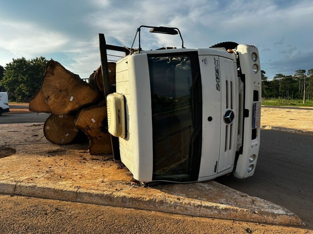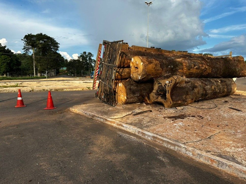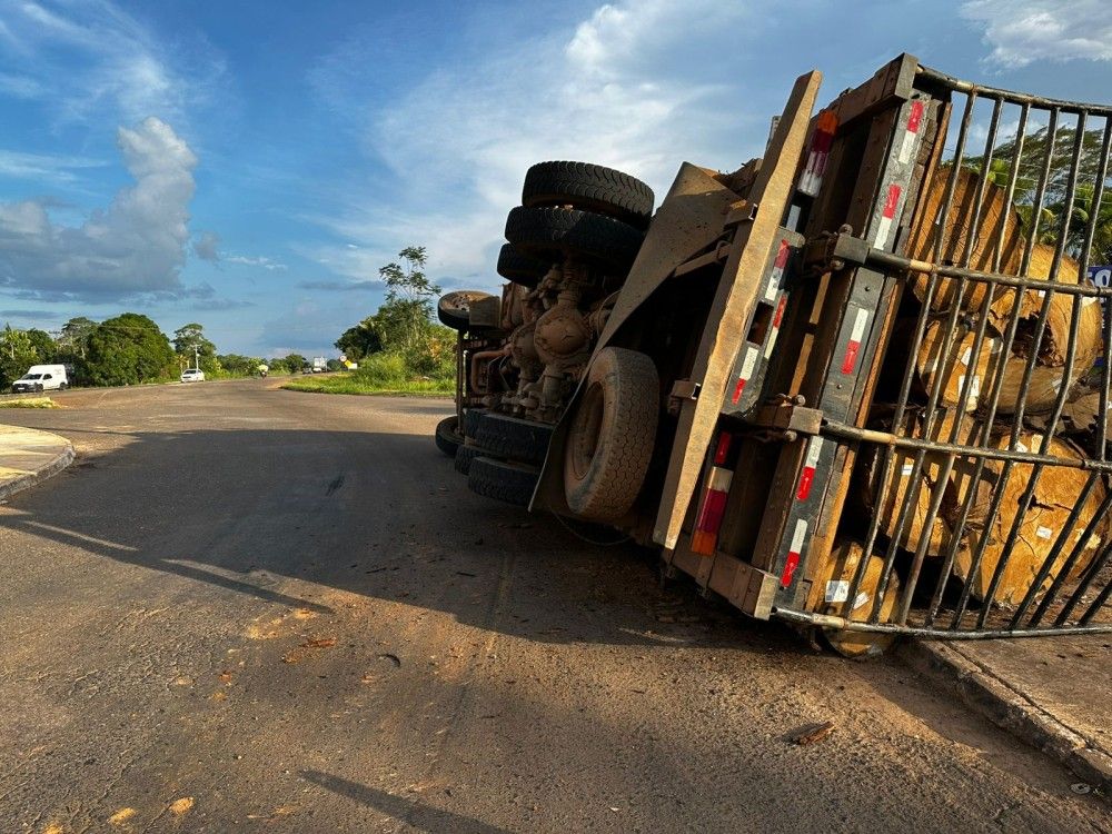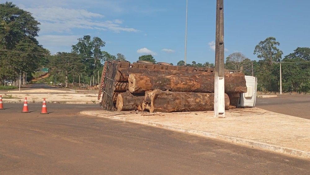 Um caminhão carregado com toras de madeira tombou na tarde desta quarta-feira, 19, no trevo que liga Jaru aos municípios de Theobroma e Governador Jorge Teixeira. O veículo vinha de Vale do Anari e seguia em direção a Jaru quando, ao realizar o contorno no trevo, acabou tombando.