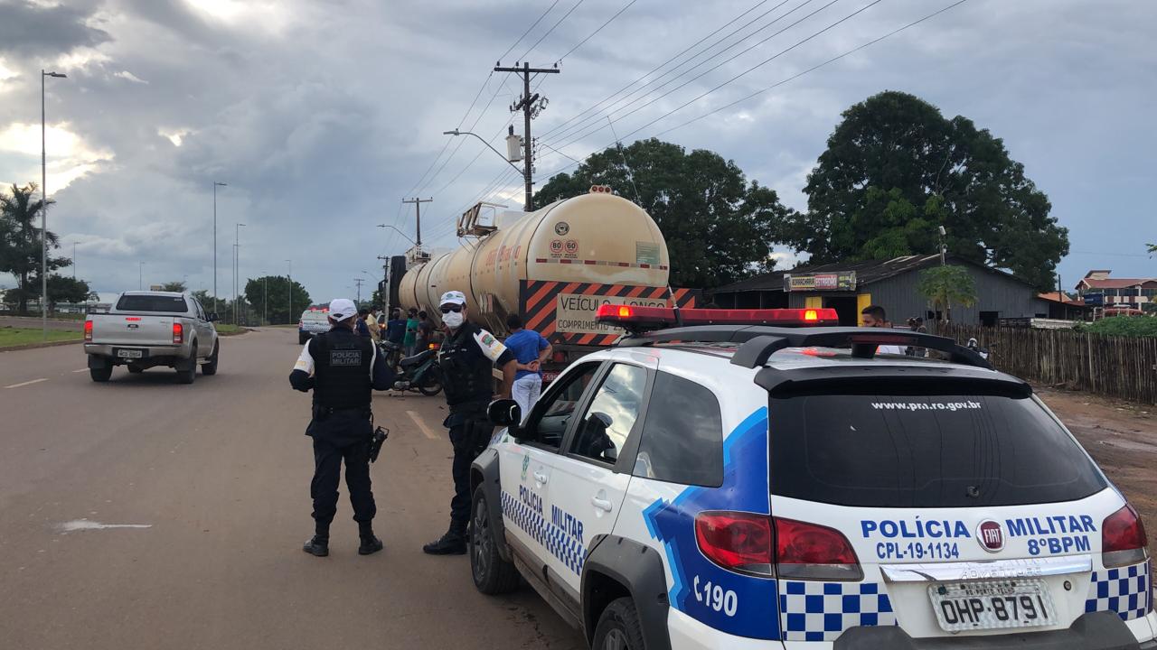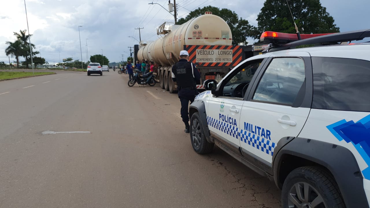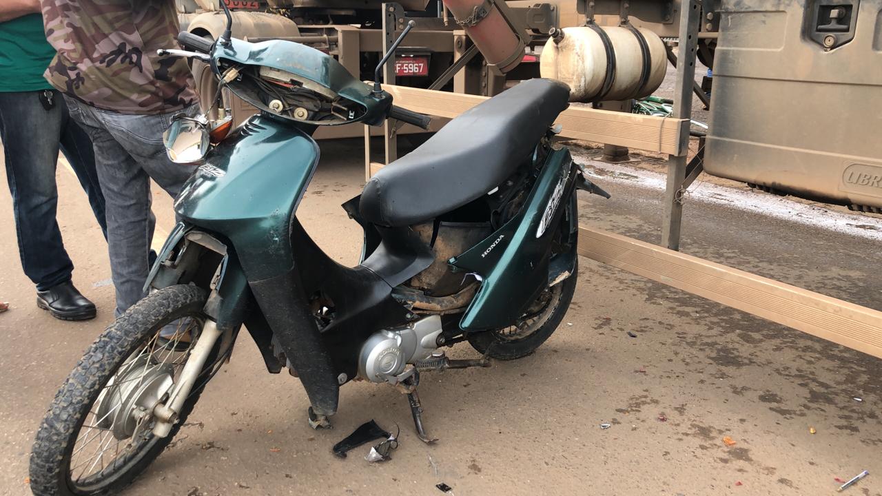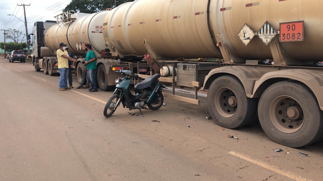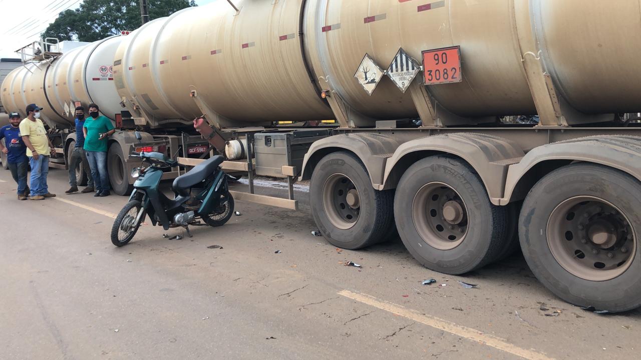 Jaru: Caminhão colide em Biz e joga-a embaixo de carreta carrega de combustível; Condutora fica ferida