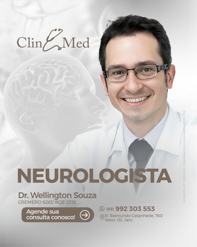 Está sofrendo com dor de cabeça frequente, tontura ou formigamentos? Esses sintomas podem indicar algo mais sério, e é fundamental procurar um especialista. Pensando nisso, a Clin Med disponibiliza atendimento com o Dr. Wellington Souza, especialista em Neurologia e Neurocirurgia, para cuidar da sua saúde com atenção e responsabilidade.
