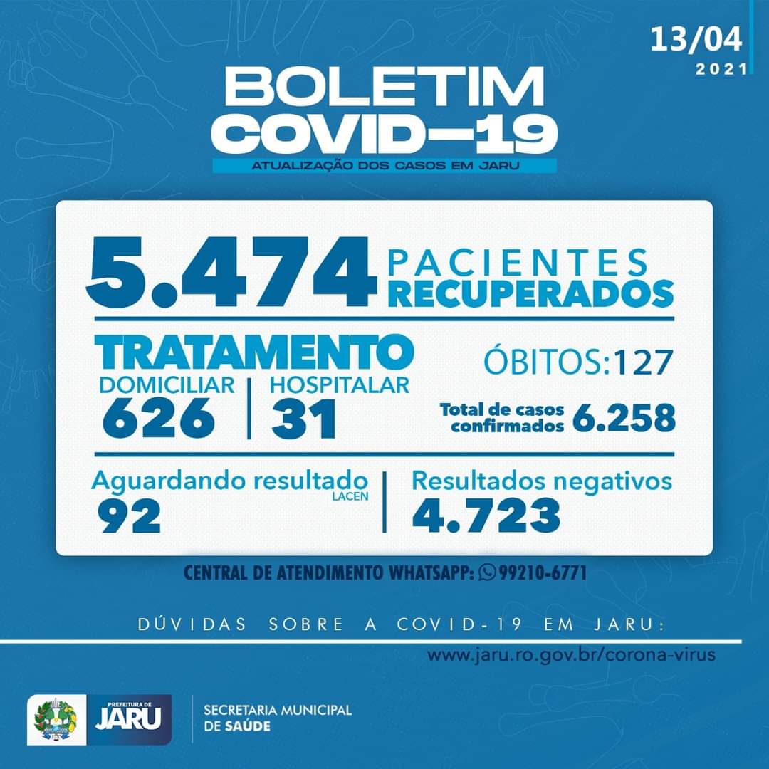 A secretaria municipal de saúde registrou nas últimas 24 horas, mais quatro vítimas da Covid-19 em Jaru e total de pessoas infectadas em tratamento somam 657.