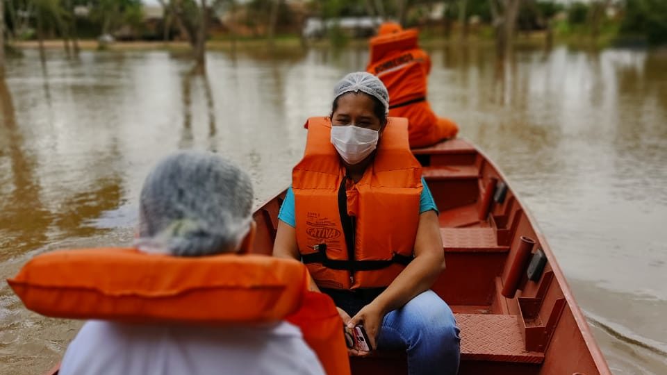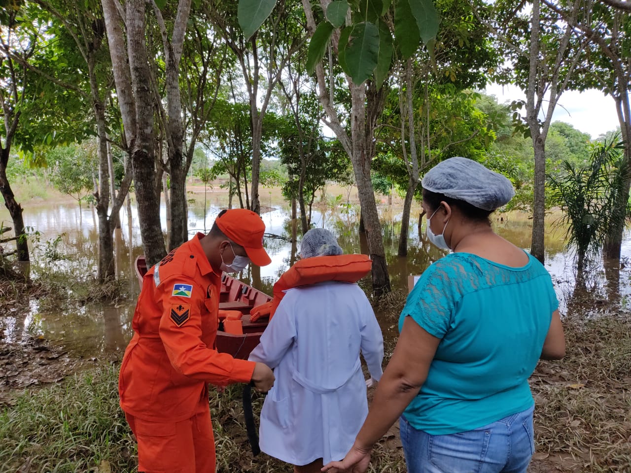 Jaru: Enfermeiras e Corpo de Bombeiros visitam morador isolado pela cheia do Rio Jaru