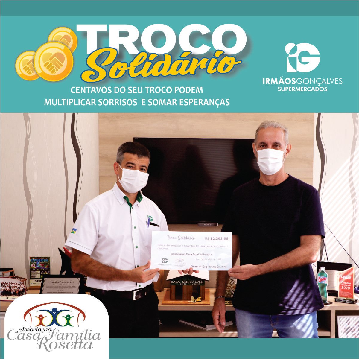 O Supermercado Irmãos Gonçalves realizou mais uma vez a entrega do Troco Solidário a Entidades de Rondônia.