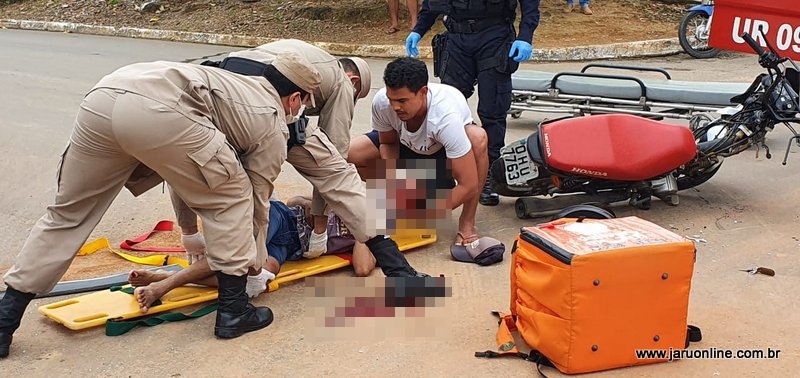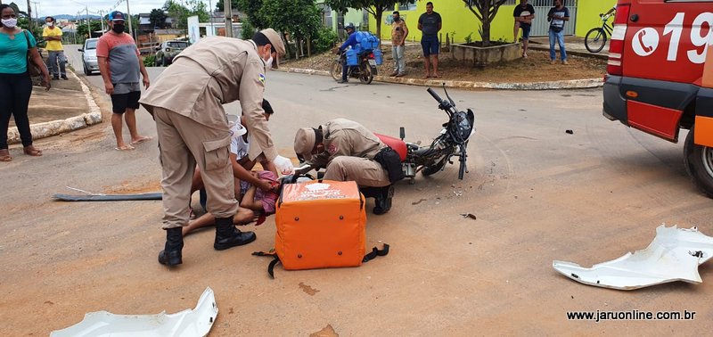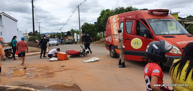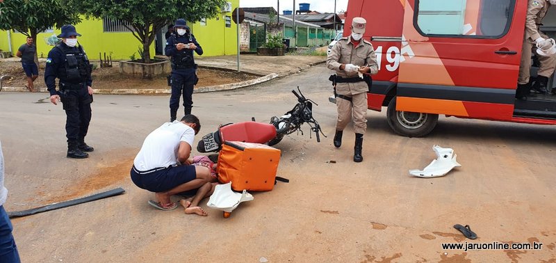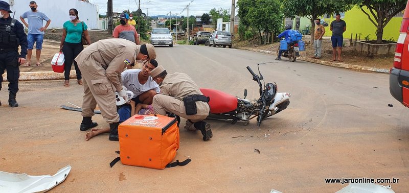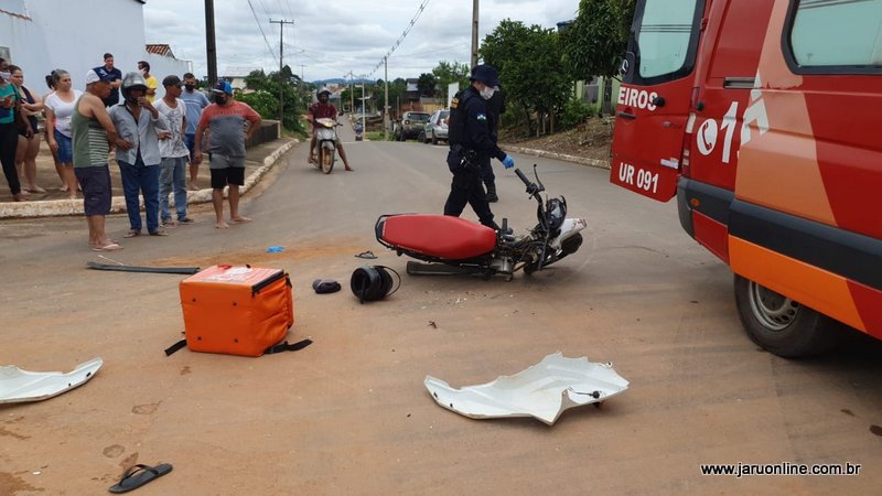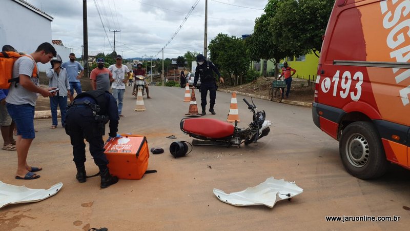 O motociclista seguia setor 06 sentido ao Rio Jaru, quando foi surpreendido pela caminhonete Fiat Toro que trafegava pela João Batista e atravessou a via do entregador.