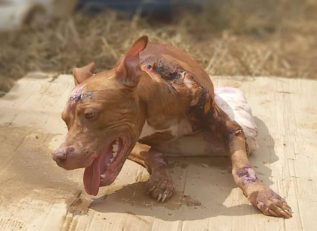 O pitbull que foi batizado de Guerreiro, apresentava sinais vitais e chegou a abanar o rabo aos PMs que foram lhe resgatar, porem ele estava muito mal, apresentando graves ferimentos e severa desnutrição.