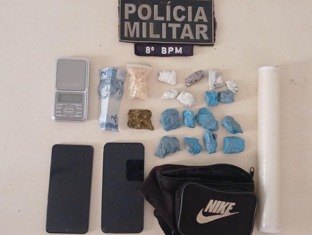 Durante a varredura no interior da casa, um homem foi localizado em um dos quartos. Em vistoria no cômodo onde ele se encontrava, foram encontradas mochilas contendo diversos pertences pessoais, além de uma pequena bolsa com vários invólucros de substância esverdeada com odor característico de maconha, porções de substância semelhante ao crack, e uma balança de precisão — itens comumente utilizados na comercialização de drogas.