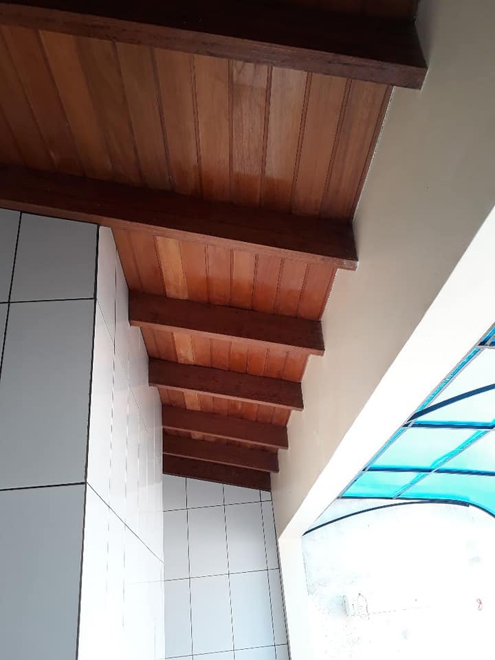 - Forro de madeira na edícula