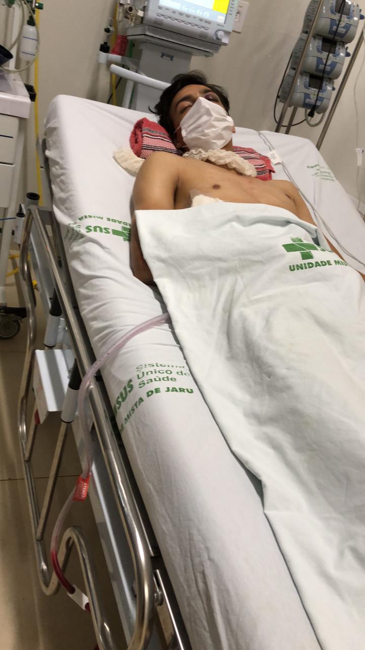 O jovem se encontra em estado grave em uma Unidade de Terapia Intensiva (UTI) no Hospital João Paulo II em Porto Velho. Na última quarta-feira (28), apresentou um quadro de hemorragia, mas foi controlada, também está sendo realizada drenagem pulmonar. Ele aguarda transferência para outro Hospital para ser realizada as cirurgias necessárias e para isso precisa de ajuda financeira para custeá-las.