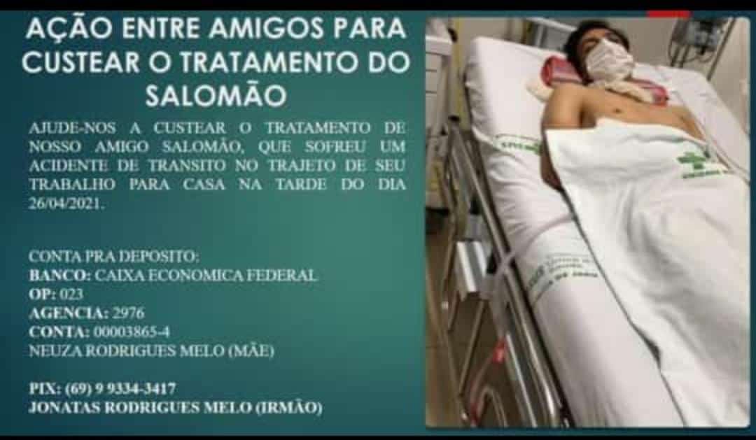 O jovem Salomão Rodrigues Melo de 21 anos, sofreu um acidente retornando para casa após um dia de trabalho na última segunda-feira 26/04.