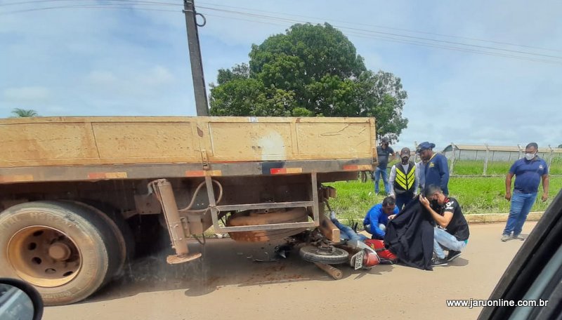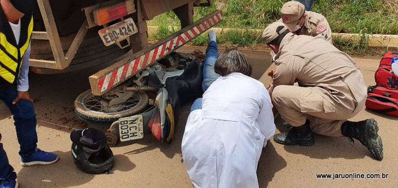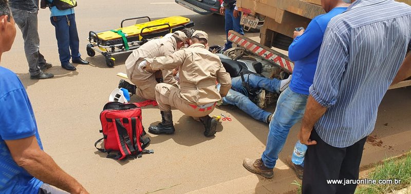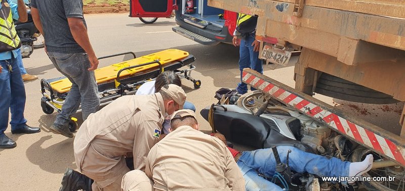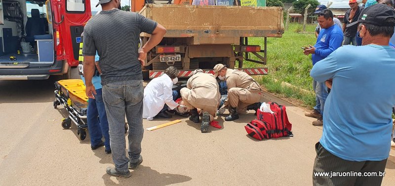 Jaru: Motociclista é socorrido em estado grave ao colidir em caminhão estacionado