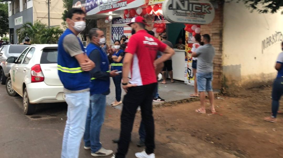 Diante a situação, a Policia Militar e uma equipe da Vigilância Sanitária foram acionados para dispersar e orientar o proprietário da pizzaria e as pessoas quanto ao distanciamento e uso de máscara. A Pizzaria recebeu uma notificação e um TC foi confeccionado pela policia. Rapidamente as pessoas dispersaram do local.