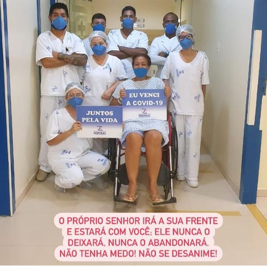 Nesta quinta-feira (04) ela anunciou em suas redes sociais uma imagem, acompanhada da equipe do Hospital Municipal com uma placa dizendo “Eu venci o covid-19”.