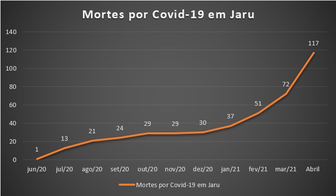 Nesta quarta-feira 07 de abril, foram registrados mais cinco óbitos no município de Jaru, vítimas da Covid-19, totalizando 117 vidas perdidas para a doença durante toda pandemia.