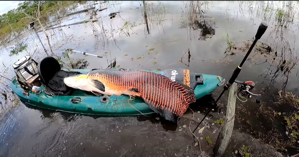 O pirarucu é um dos maiores peixes de água doce. Seu nome vem de dois termos indígenas pira, “peixe”, e urucum, “vermelho”, devido à cor de sua cauda. O comprimento do pirarucu adulto costuma variar de 2 a 3 metros, e o peso, de 100 a 200 Kg.