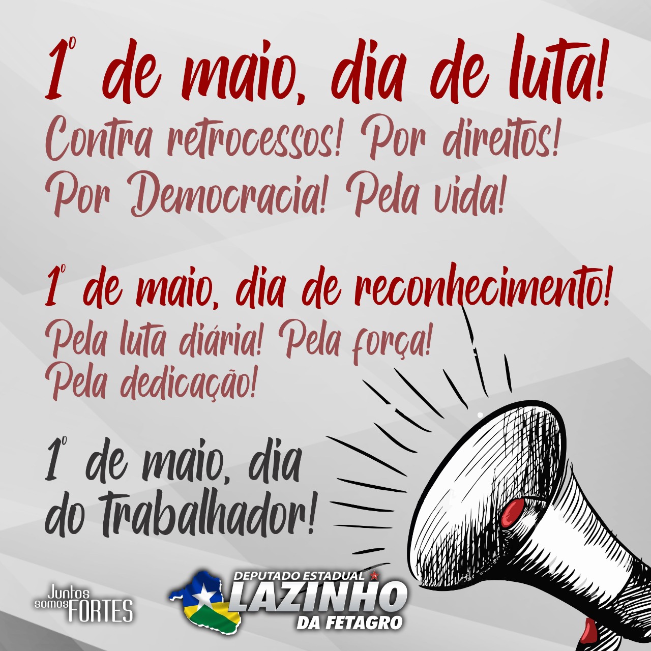Mensagem do Deputado Estadual Lazinho da Fetagro alusiva ao Dia do Trabalhador – VÍDEO Por admin postado em 1 de maio de 2021 às 04:00 http://jaruonline.com.br/wp-content/uploads/2021/04/DIA-DO-TRABALHADOR-8.mp4