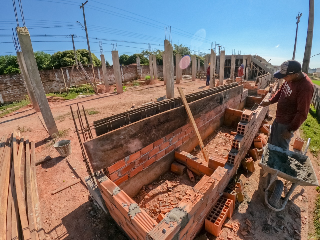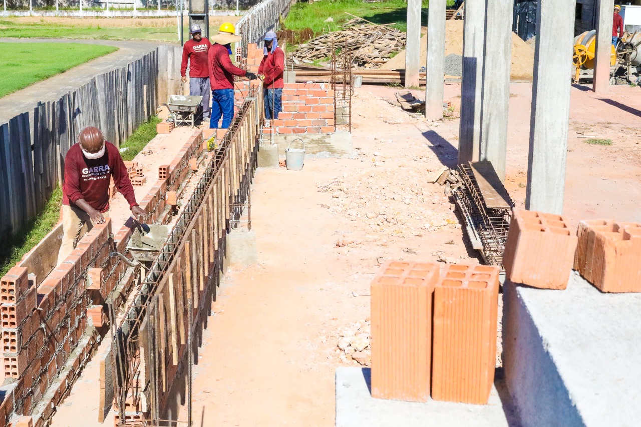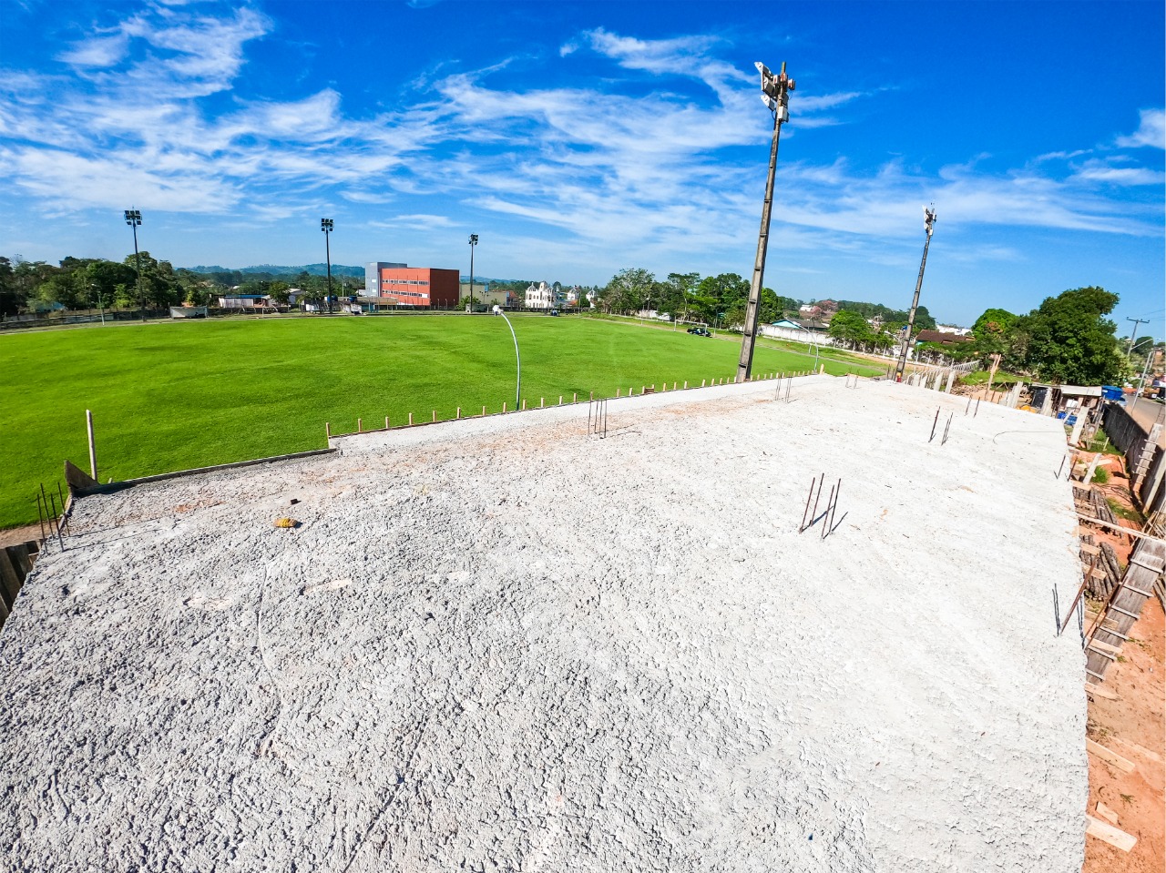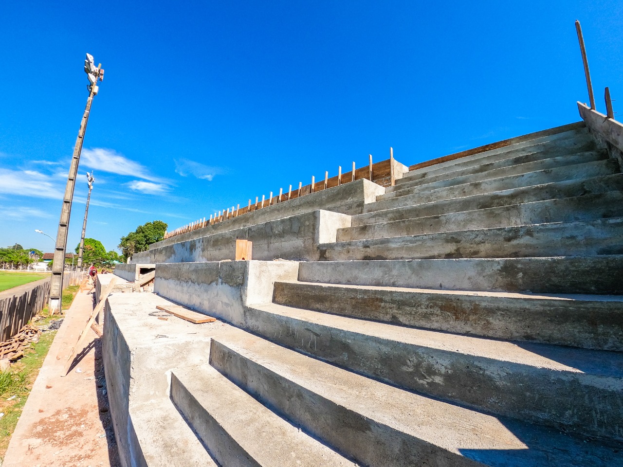 Os assentos já foram concretados e a obra continua a todo vapor.