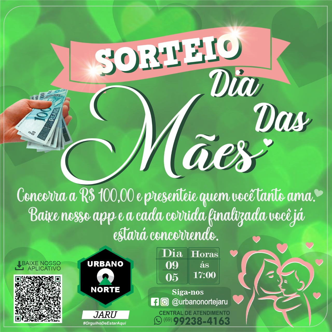 Basta baixar o aplicativo Urbano Norte e fazer muitas corridas por que a cada corrida que você fizer pelo aplicativo você terá mais chances de ganhar e já estará concorrendo a 100,00 para comprar aquele presente especial pra sua mãe☺️👍🏼