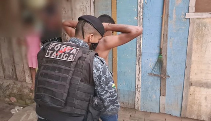 A prisão de B. A. C., de 18 anos, aconteceu na tarde desta terça-feira, dia 18, na Rua Dos Profetas, no bairro Primavera, 2º Distrito de Ji-Paraná. Uma Guarnição de Força Tática patrulhava as imediações quando avistaram o foragido sentado na varanda de sua casa.