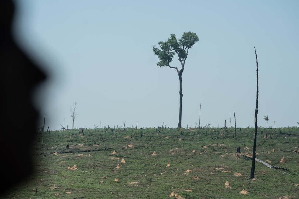 Dentro da área, toras de árvores derrubadas impedem a passagem nos ramais (estradas de terra). Clarões sem vegetação se destacam entre os caminhos e, muitas vezes, o que era floresta já virou carvão. O desmatamento e grilagem ficaram mais intensos a partir de 2016, mesmo ano de criação do prédio da Funai (veja gif acima).