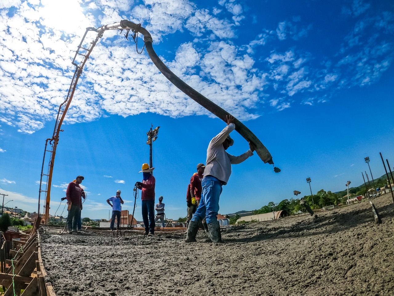 Nesta etapa, a empresa contratada para a execução da obra, realiza a concretagem da laje, de parte da estrutura que compõe o projeto.