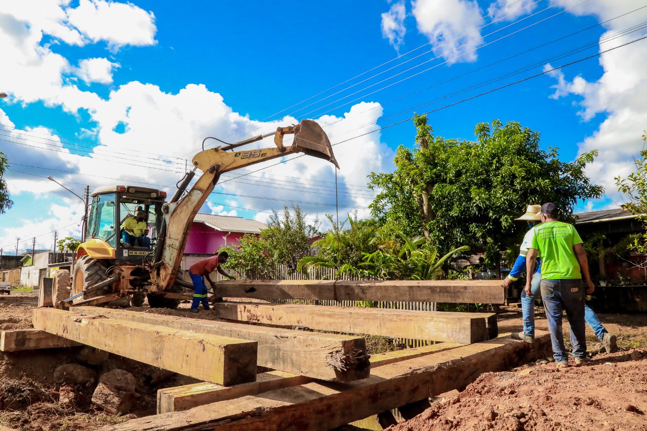 Equipes da Secretaria Municipal de Infraestrutura resolveram na última terça-feira (23) o problema estrutural de uma ponte de madeira na Rua Manoel Ribeiro Mendes no setor 04.
