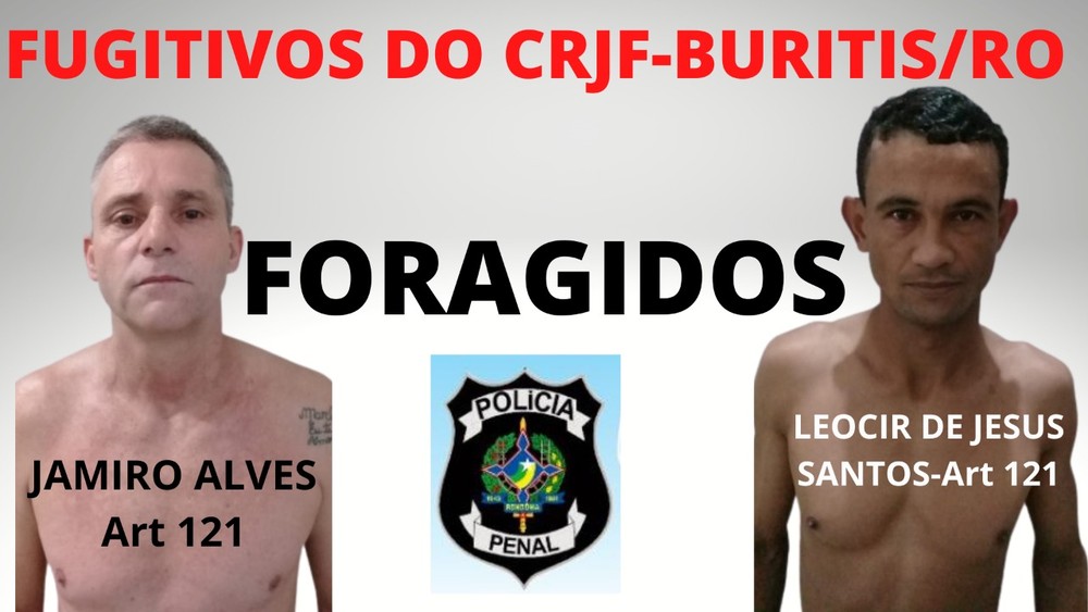 Dois presos conseguiram fugir enquanto trabalhavam na área externa do Centro de Ressocialização Jonas Ferreti, em Buritis (RO), no Vale do Jamari. A fuga aconteceu na última sexta-feira (19) e Secretaria de Estado da Justiça (Sejus) disse nesta quinta-feira (25) que eles seguem foragidos e a polícia tenta recaptura-los.