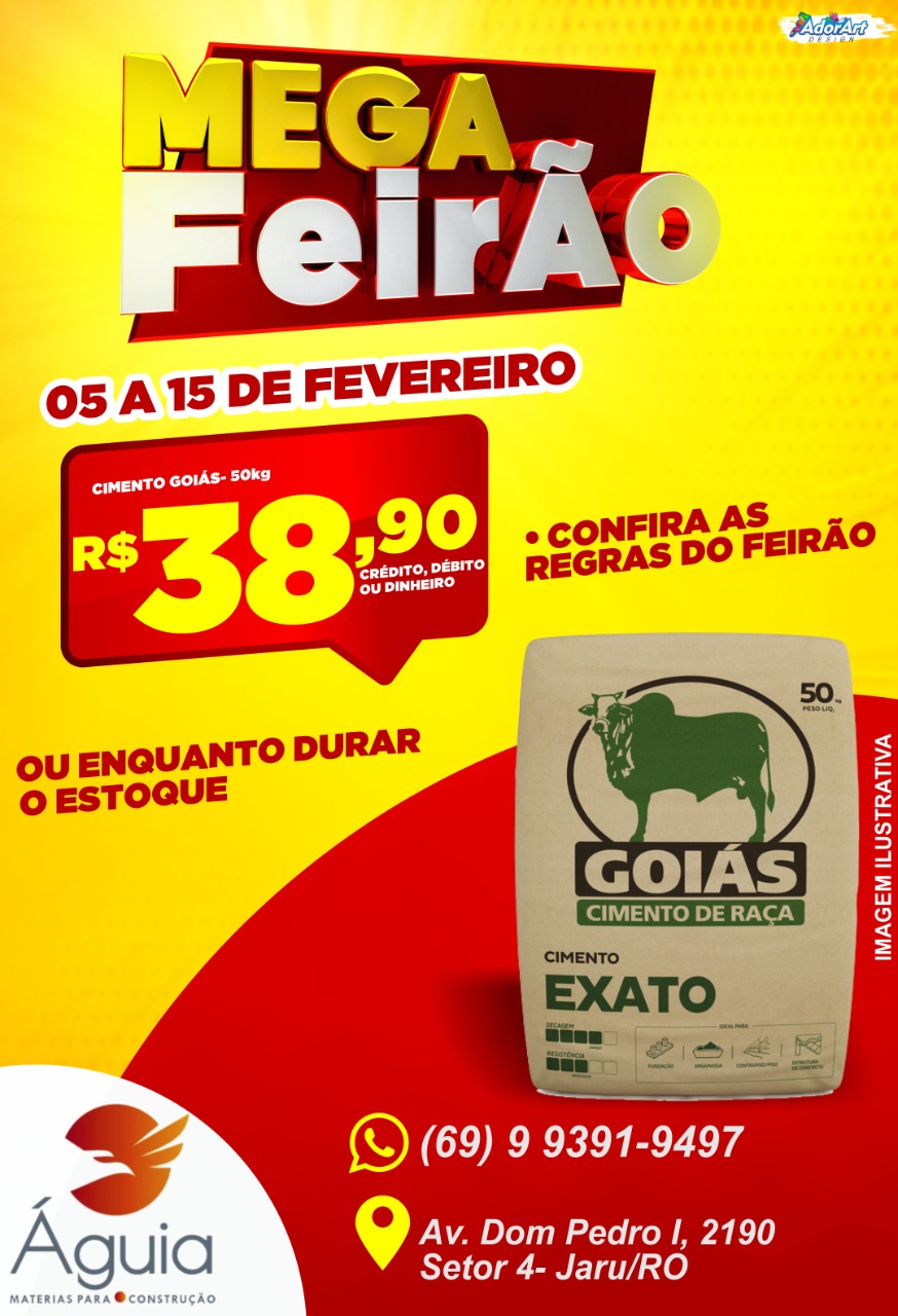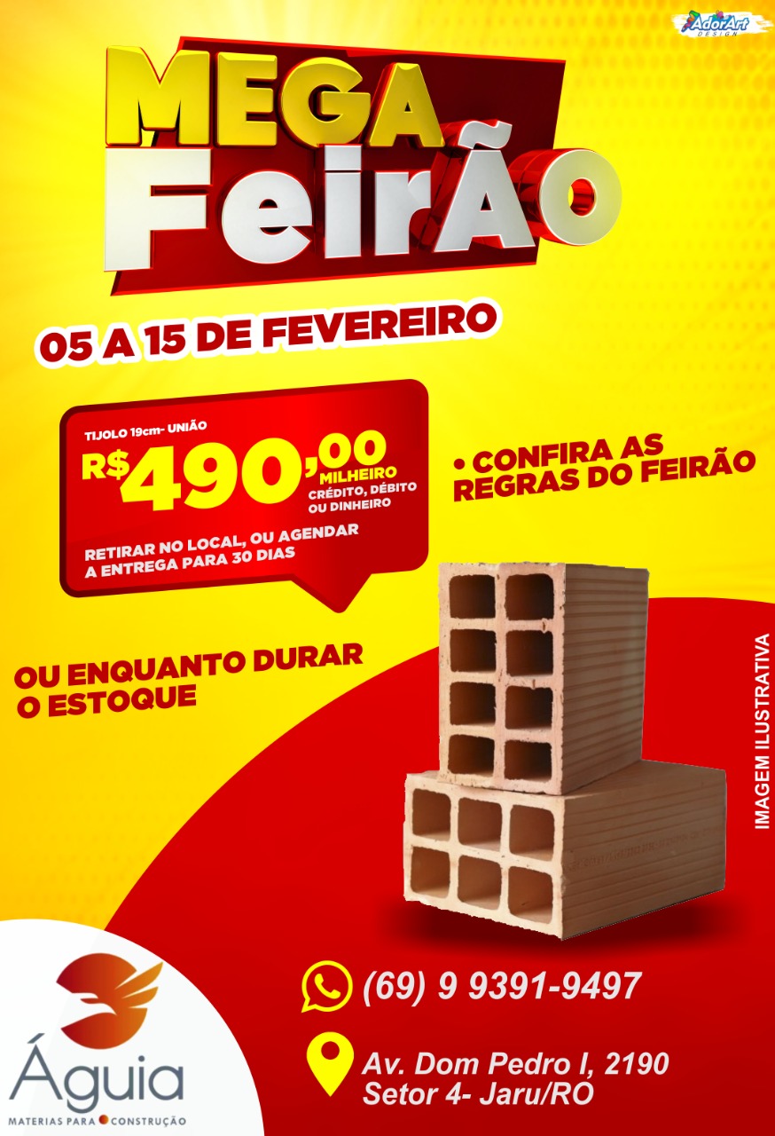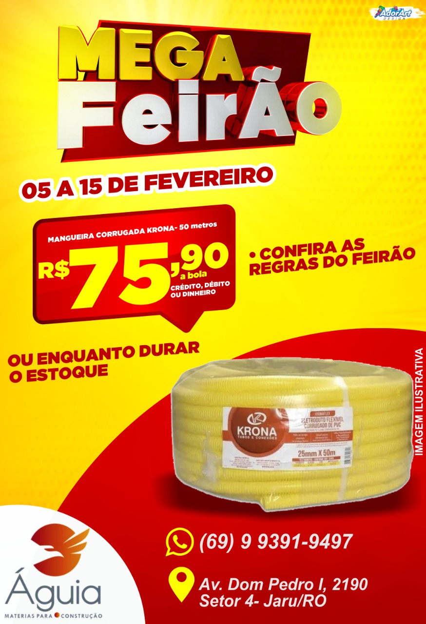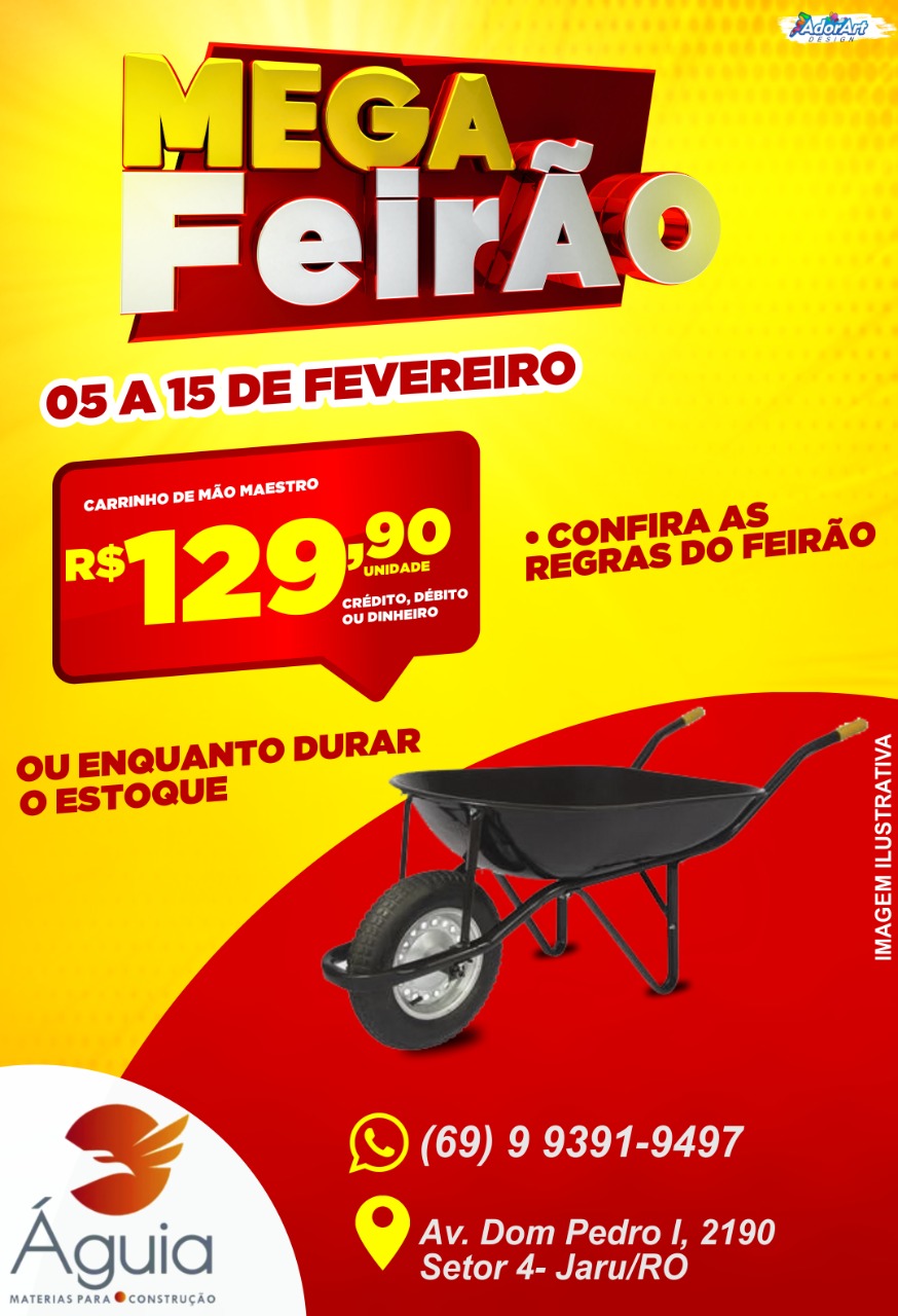 4º Mega Feirão da Águia Materiais para Construção, quase preços de custo. Essa super promoção irá começar nesta sexta-feira (05) e vai até dia 15 de fevereiro.