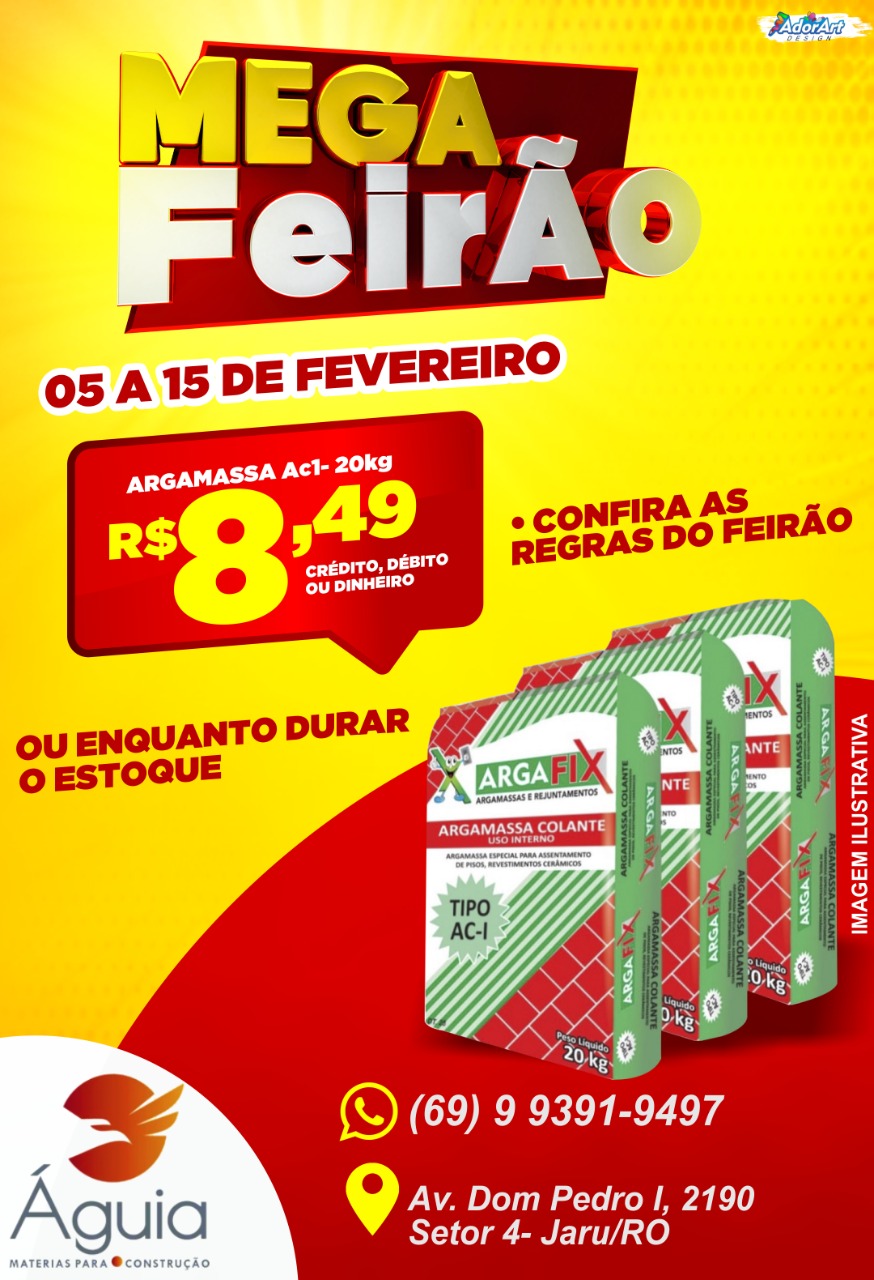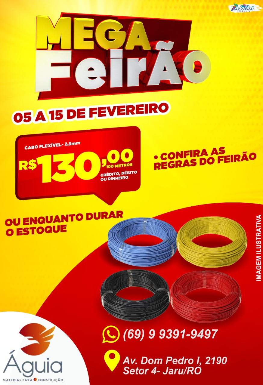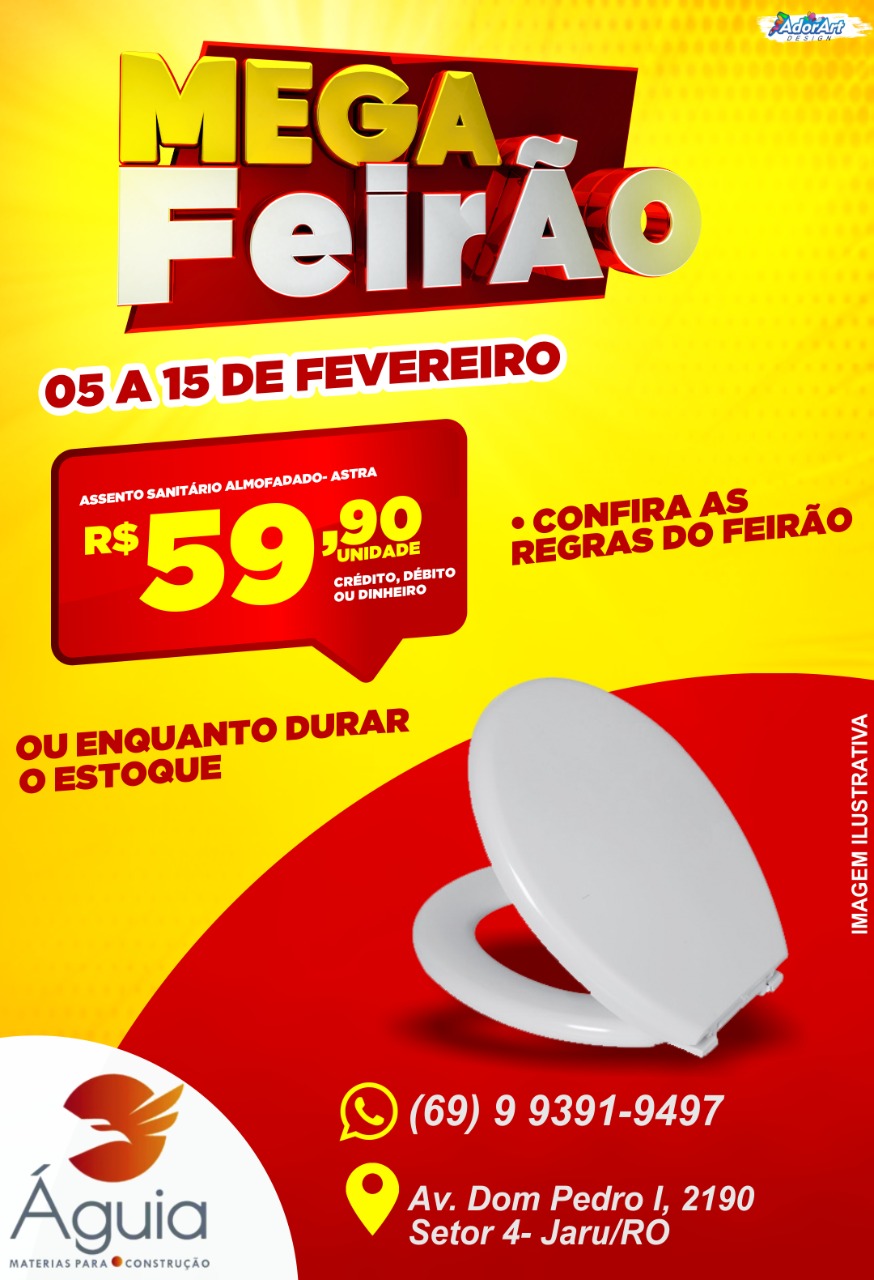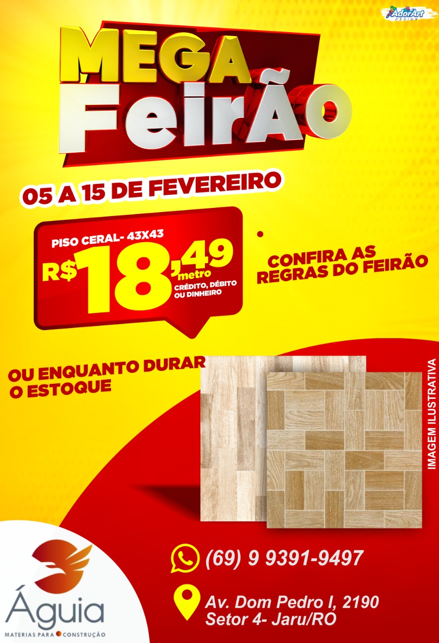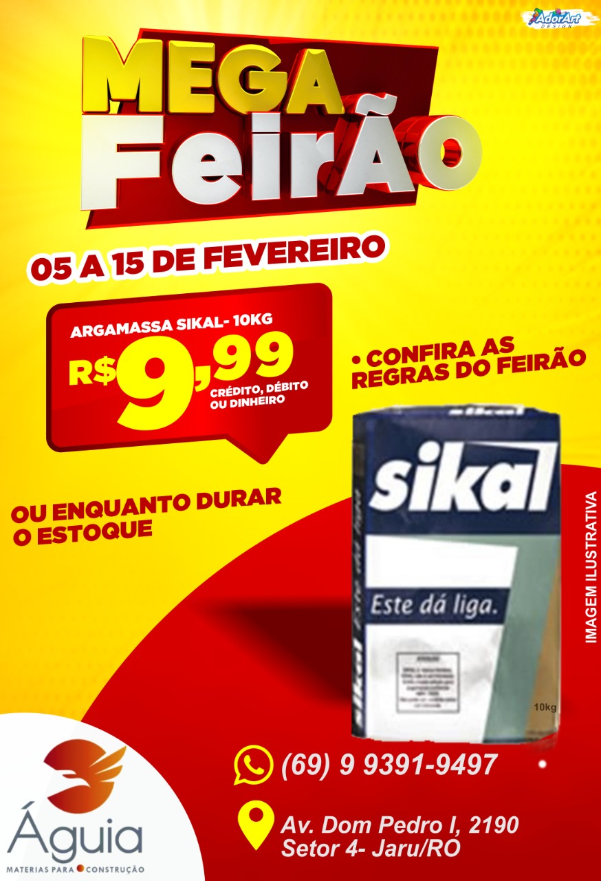 4º Mega Feirão da Águia Materiais para Construção, quase preços de custo. Essa super promoção irá começar nesta sexta-feira (05) e vai até dia 15 de fevereiro.