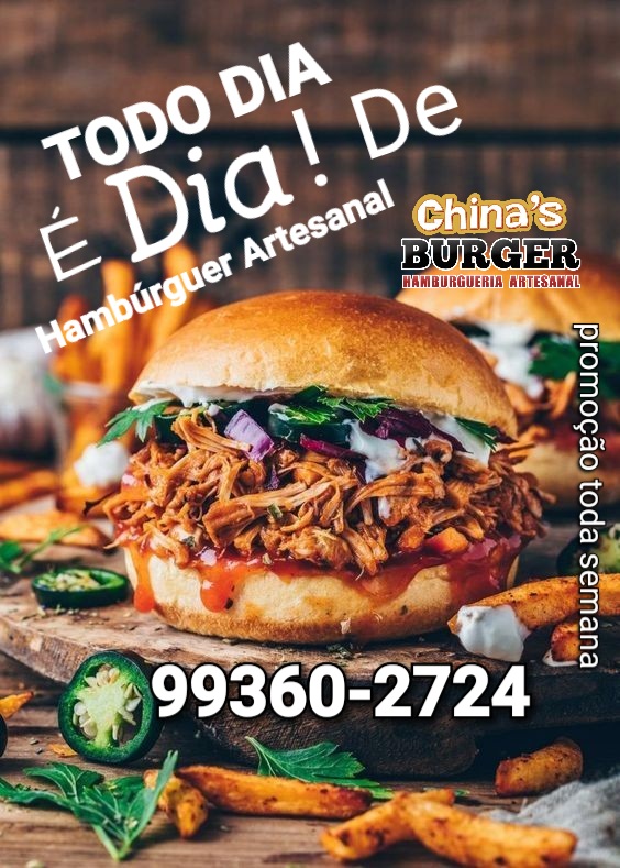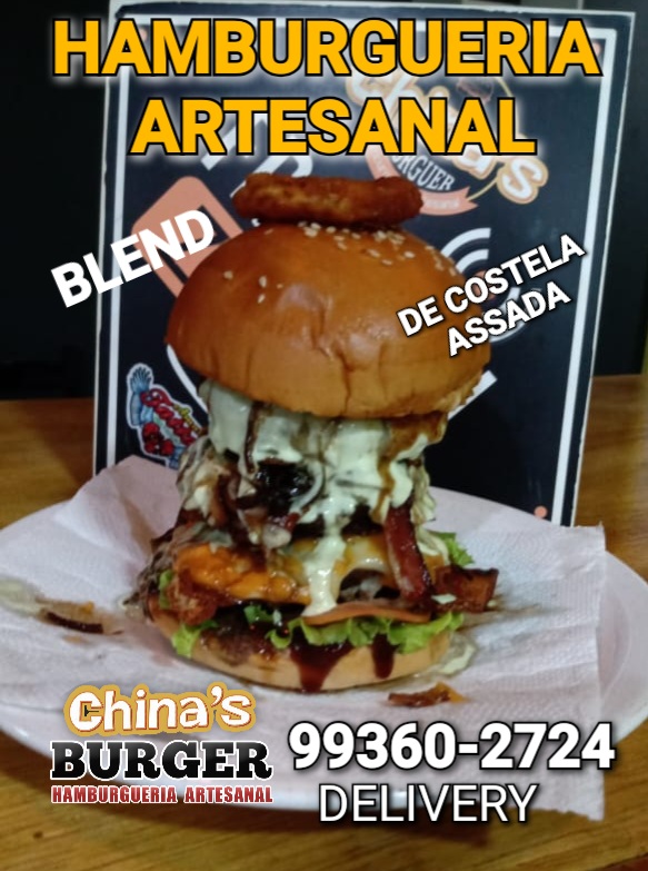 A especialidade do China’s Burger é em Hamburguers artesanais assados na brasa, combos e variadas promoções!