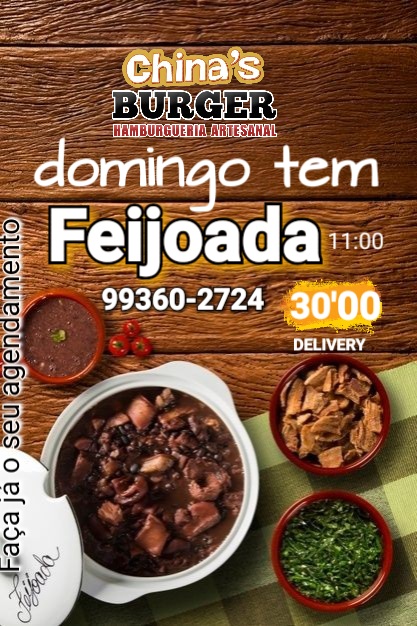 A Hamburgueria China’s Burger está com uma incrível novidade em lanches e porções de feijoada, costelinha suína e prato executivo de picanha suína defumada.